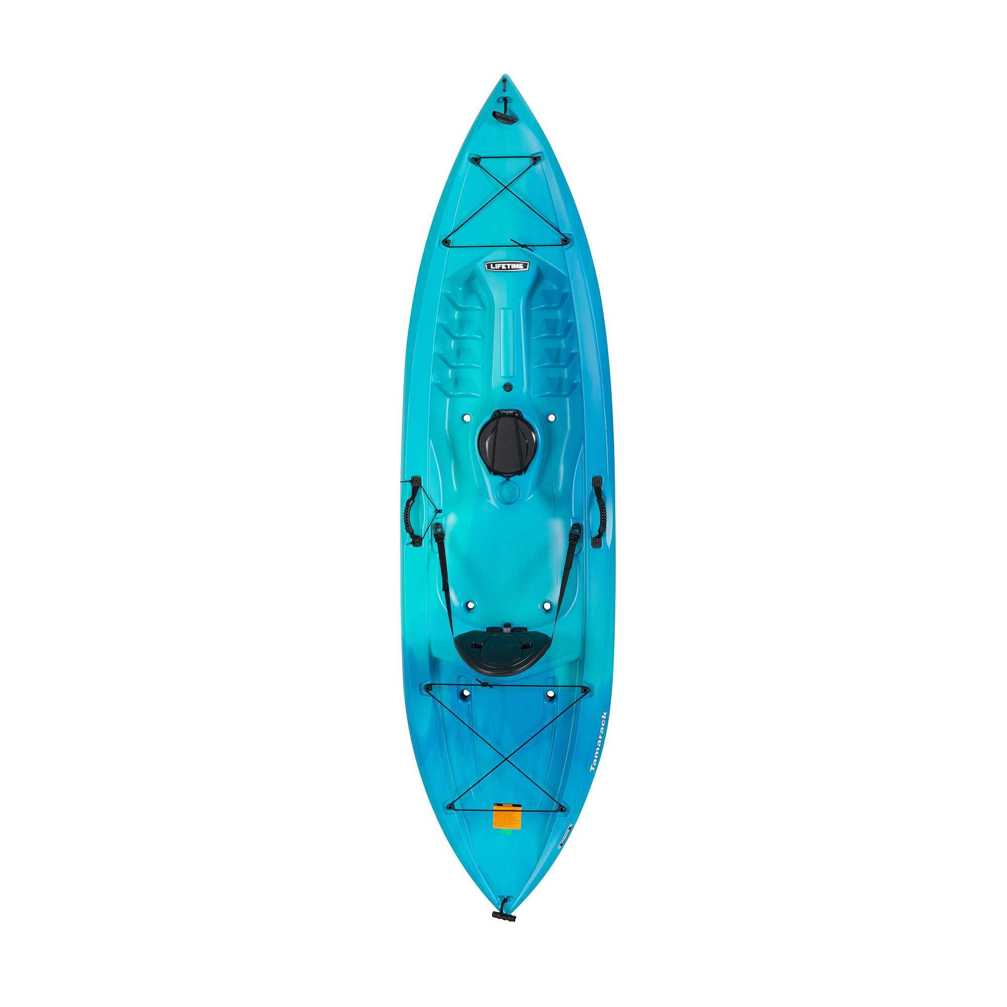 The Lifetime Tamarack 10 ft. Kayak is a sit-on-top kayak that has a comfortable backrest for your long paddling adventures. Designed for extreme safety and stability, the Tamarack has a stable flat bottom with deep tracking channels and stability chine rails. The kayak is constructed of blow-molded high-density polyethylene (HDPE) making it durable, UV-protected, and impact resistant. The lightweight, 50 pound design and front and rear carry handles make it easy to transport to and from the waterfront. With a storage hatch, paddlekeeper, and multiple footrest positions, this kayak has plenty of extras to enhance your paddling experience.Specifications