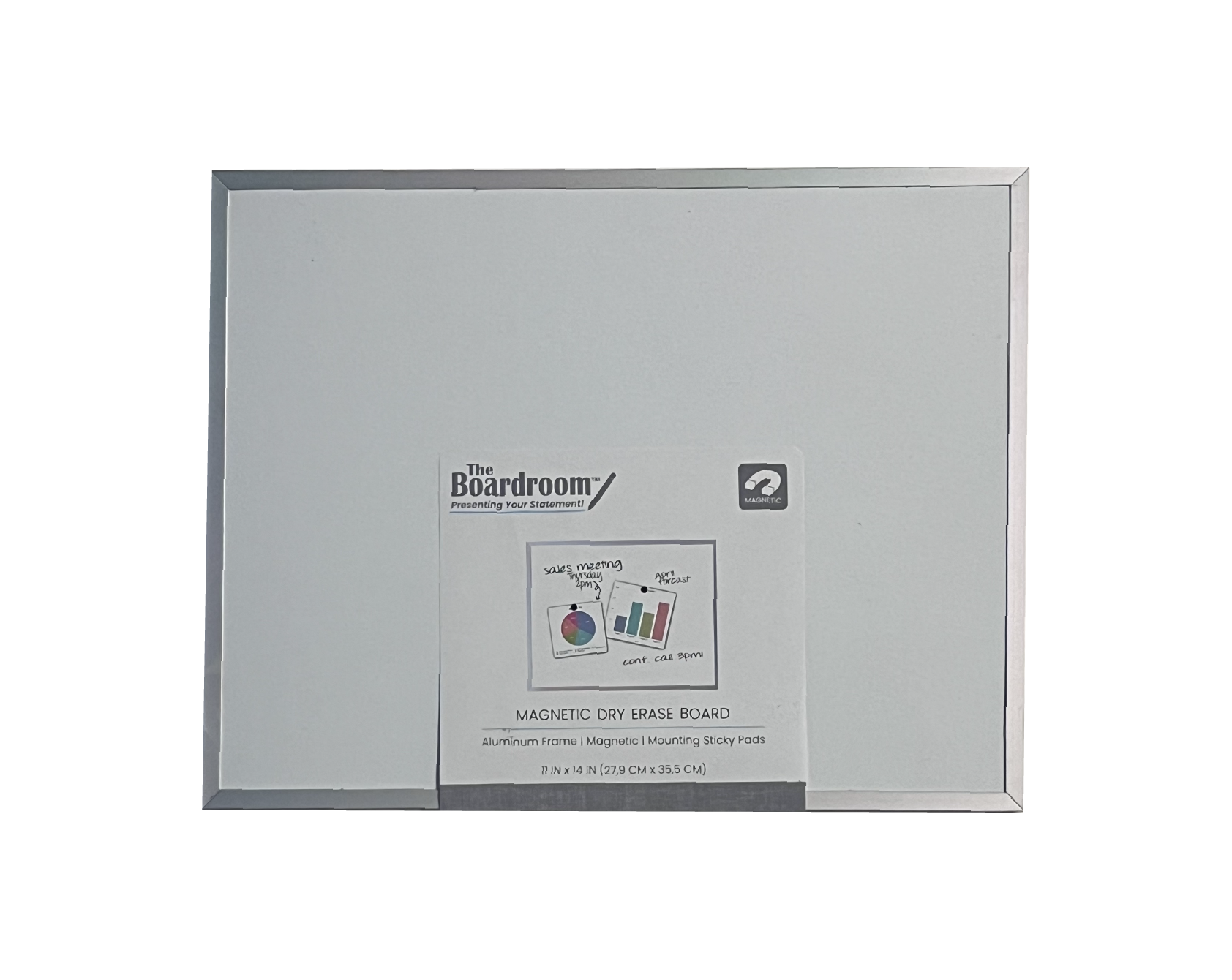 11x14 inch; Aluminum frame; Includes mounting hardware; Magnetic surface