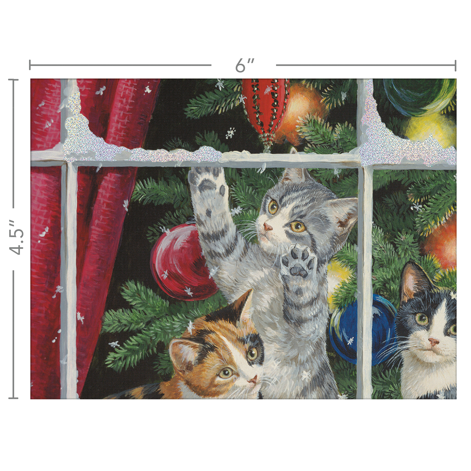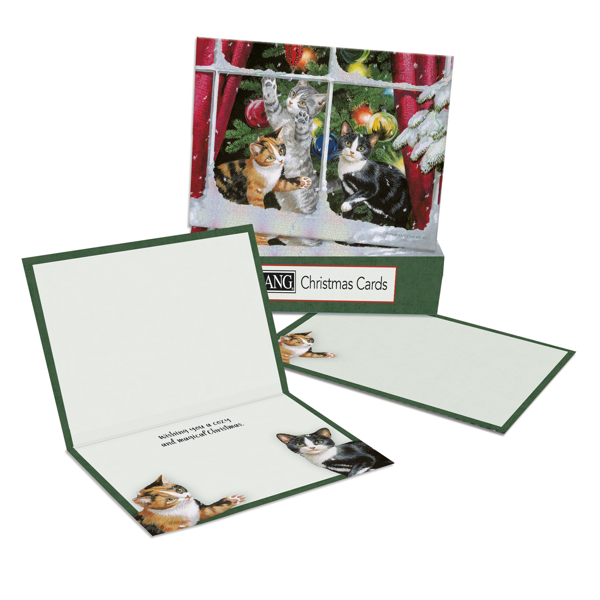 The Kitten Christmas Classic Christmas Cards by LANG are an elegant way to send season's greetings to your loved ones. Featuring artwork by Persis Clayton Weirs of an adorable litter of kittens watching the Christmas snow, you'll get 12 linen embossed cards with full-color artwork inside and out, and 13 matching envelopes! Plus, the new acetate-free packaging doubles as a keepsake box, keeping your cards nice and safe all year long!Specifications