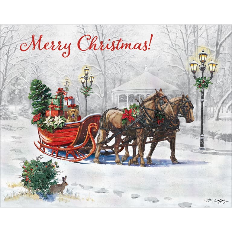 Send season's greetings to your family and friends with Sleigh Bells Ring Boxed Christmas Cards featuring artwork by Tim Coffey! Fill hearts with holiday cheer with cards that combine colorful artwork with holiday greetings inside and out. With LANG quality features like linen embossed paper stock and glitter embellishment, these are a truly special way to connect with loved ones around the holidays!Specifications