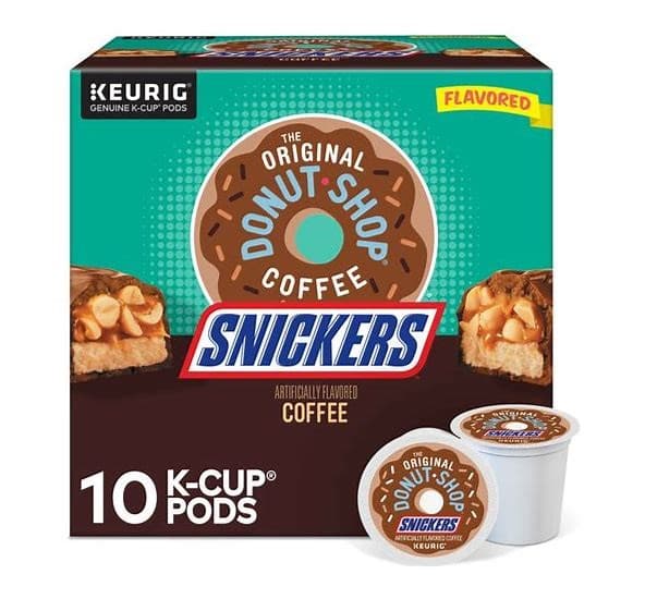 Unwrap a little sweetness every day with The Original Donut Shop Snickers flavored coffee. Get ready to dive headfirst into a cup of coffee inspired by the always satisfying, deliciously gratifying flavors of Snickers: creamy milk chocolate, gooey caramel, and just a touch of nuttiness. The Original Donut Shop coffee stacks flavors on flavors to reimagine the limits of coffee and turns the everyday into a delicious treat. With the press of a button, you can sip into Snickers flavored coffee, where the scrumptious candy bar you know and love meets the deliciousness of a hot cup of joe.Specifications