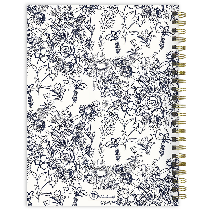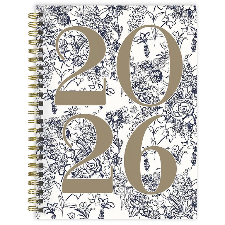For something that’s pretty and functional, look no further than our 2026 medium weekly/monthly planner with a lovely French floral cover design! Measuring 6.5" (w) x 8" (h), the all-encompassing medium planner, boasts monthly, 2-page spreads that include lined sections for notes, tasks, and goals and weekly, 2-page spreads with lined daily sections to keep plans neat and organized, plus a dedicated weekly priorities section to help keep you focused. The interior pages are designed with alight and airy feel, accented with faux monthly tabs for easy access to weekly planning. Enhance your daily plans with 216 color coordinating stickers to highlight special occasions and personalize your planner. Bonus lined notes pages are in the back with yearly 2026 and 2027 views in the front. Featuring a durable, textured cover and gold wire-o binding designed to lay flat when open, this 12-month planner covers January 2026 through December 2026 and contains no plastic; Goods Without Guilt!Specifications