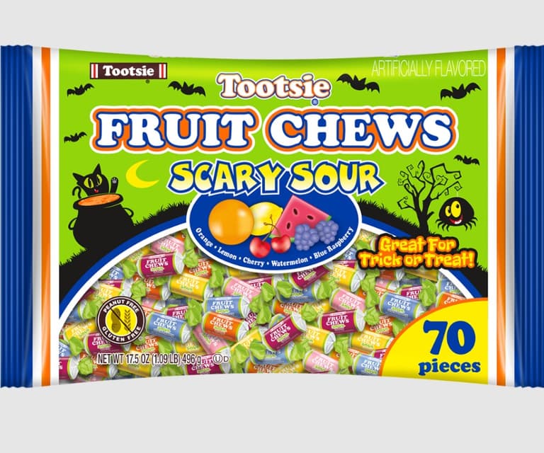 DO YOU LIKE FRUIT CHEWS? DO YOU LIKE SOUR SWEETS? YOURE IN LUCK TOOTSIE SOUR FRUIT CHEWS ARE EQUALLY AS TASTY AND PACKED WITH A SOUR PUNCH. THESE INDIVIDUALLY WRAPPED BITE SIZED TREATS COME IN FIVE SOUR FLAVORS THAT INCLUDE CHERRY LEMON ORANGE WATERMELON AND BLUE RASPBERRY.Specifications