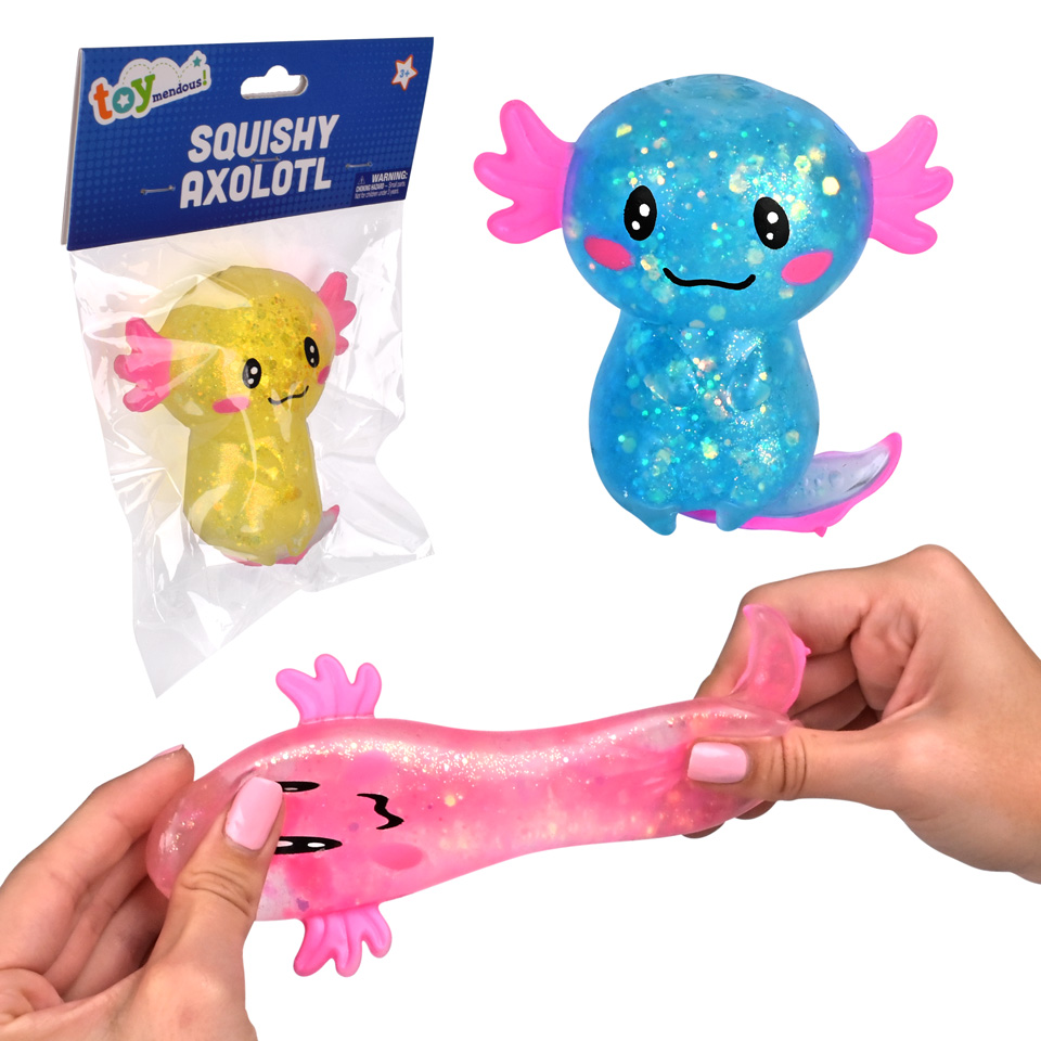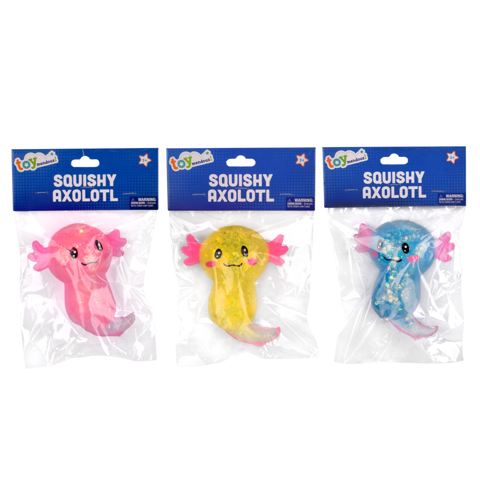 (we cannot guarantee a specific color) If you would like us to choos efor oyu we are happy to do so. If not, please visit us in store to choose your favorite color.Dive into sensory fun with the Toymendous Axolotl Squishies! These adorable squeeze toys bring the charm of underwater creatures to life with their axolotl-inspired design and delightful details. Perfect for kids ages 3 and up, teens, and adults, they offer a calming fidget experience that’s as relaxing as a day at sea. Lightweight and portable, they’re great for home, school, or on-the-go adventures. You’ll receive one of three vibrant aquatic colors ocean blue, coral pink, or sunny yellow each as satisfying to squish as it is to display. Whether you’re shopping for a unique gift, party favor, or whimsical desk accessory, Toymendous Axolotl Squishies are sure to make waves!Specifications