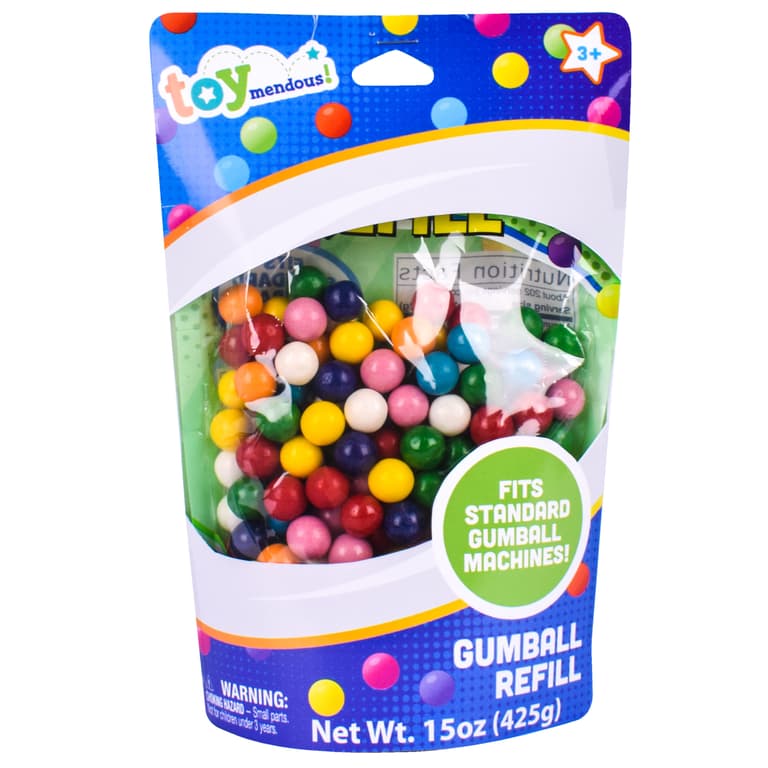 15 oz container filled with 8 assorted colors and flavors. Try all the flavors or mix and match to make your own. The gumball refill bag is perfect to refill your Giggle Zone Classic Gumball Bank or most gumball machines. They are also great to have on hand.Specifications