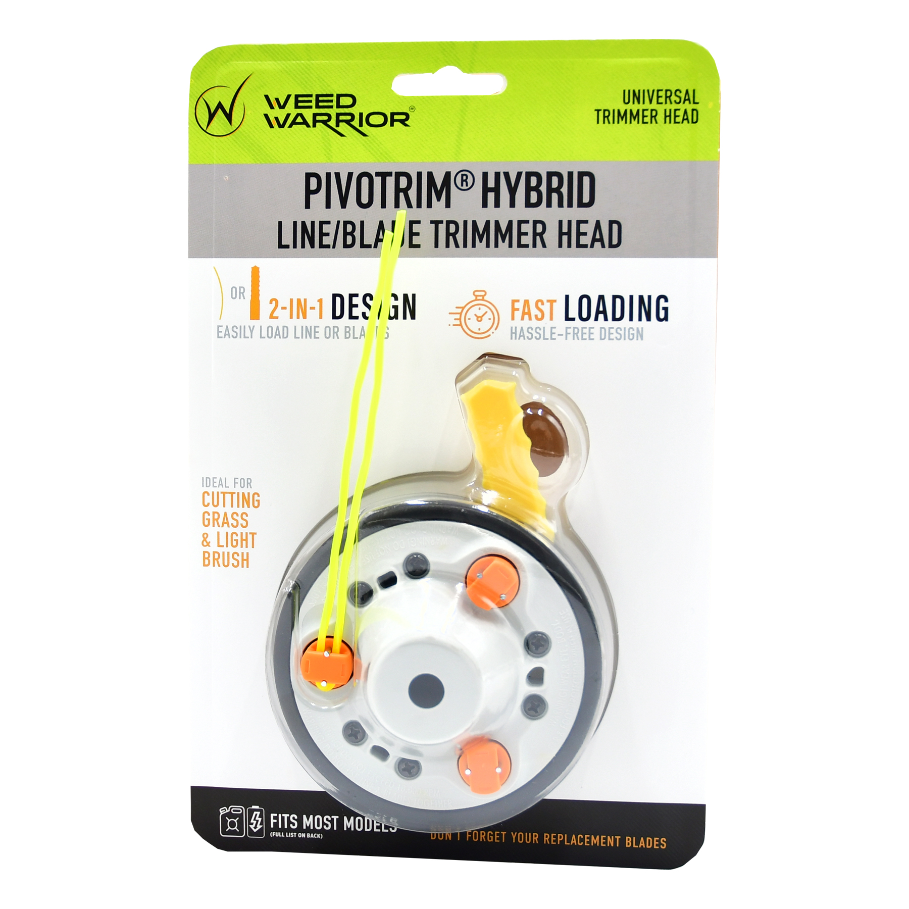 Accepts 0.095 trimmer line, 2-1 design, line pivots to prevent breakage, line for trimming grass and blades for cutting light brush; high quality at an affordable priceSpecifications