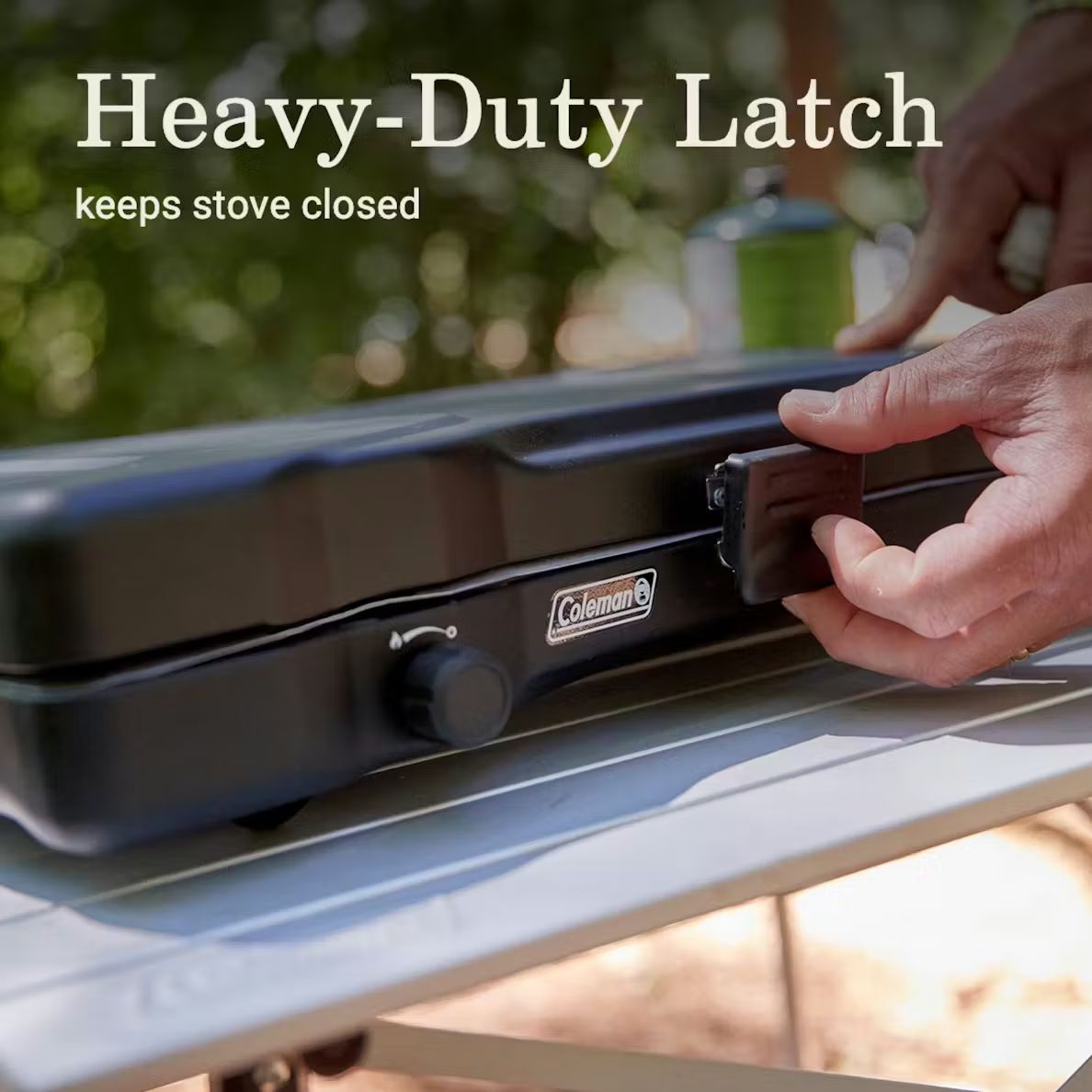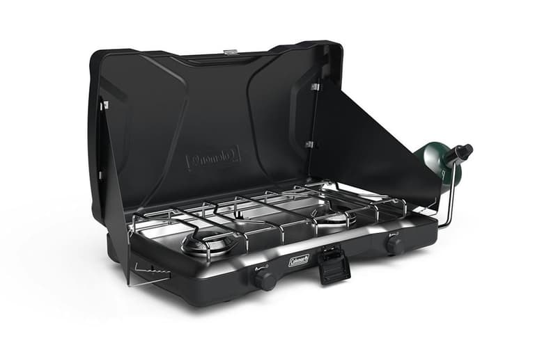 22,000 total BTUs of cooking power; Durable, chrome-plated grate is removable for easy cleanup; Easy to open and keeps the stove closed when not in use; Fits 12-inch and 10-inch pan; For precise temperature and simmering control of two independently adjustable burners; Help shield and protect burners from wind; Up to 1 hour on high on one 16 oz. propane cylinder
