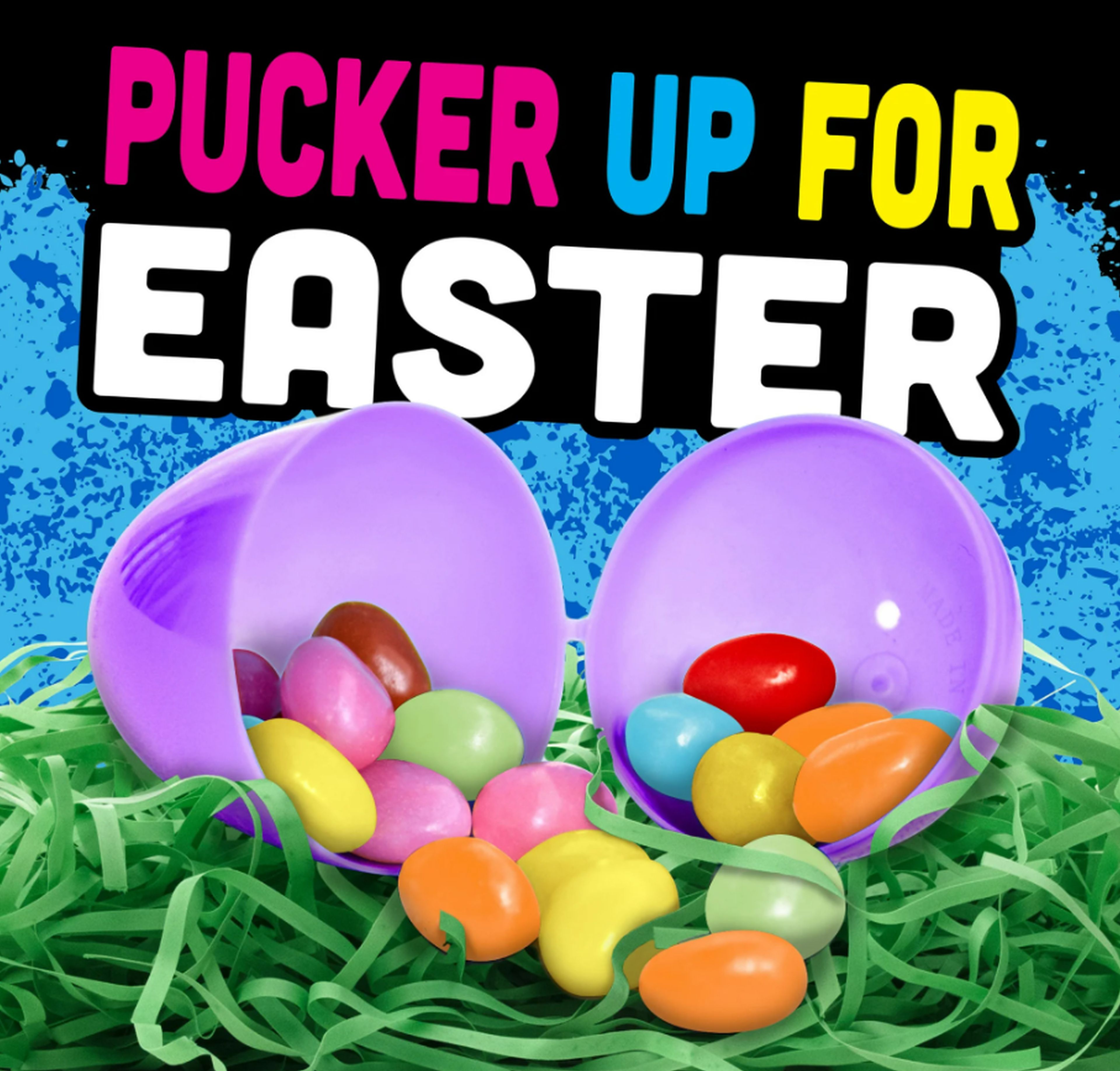 12 OZ; 2 CRAWLER FLAVORS IN ONE; EASTER; SOUR CHERRY LEMON, STRAWBERRY GRAPE, ORANGE MANGO, RASPBERRY STRAWBERRY, GRAPE APPLE AND LEMON RASPBERRY