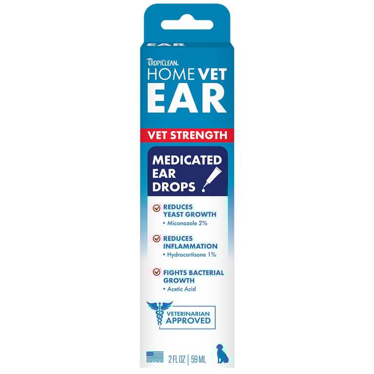 TropiClean HomeVet Medicated Ear Drops Vet-recommended relief for irritated dog ears. This alcohol-free formula blends miconazole to fight fungus, hydrocortisone to soothe itching, and acetic acid to reduce odor. Use daily or after baths and swims to help prevent irritation from bacteria and yeast. No sting, or irritation- just fast, gentle care. Made in the USA with 40+ years of trusted grooming innovation.Specifications