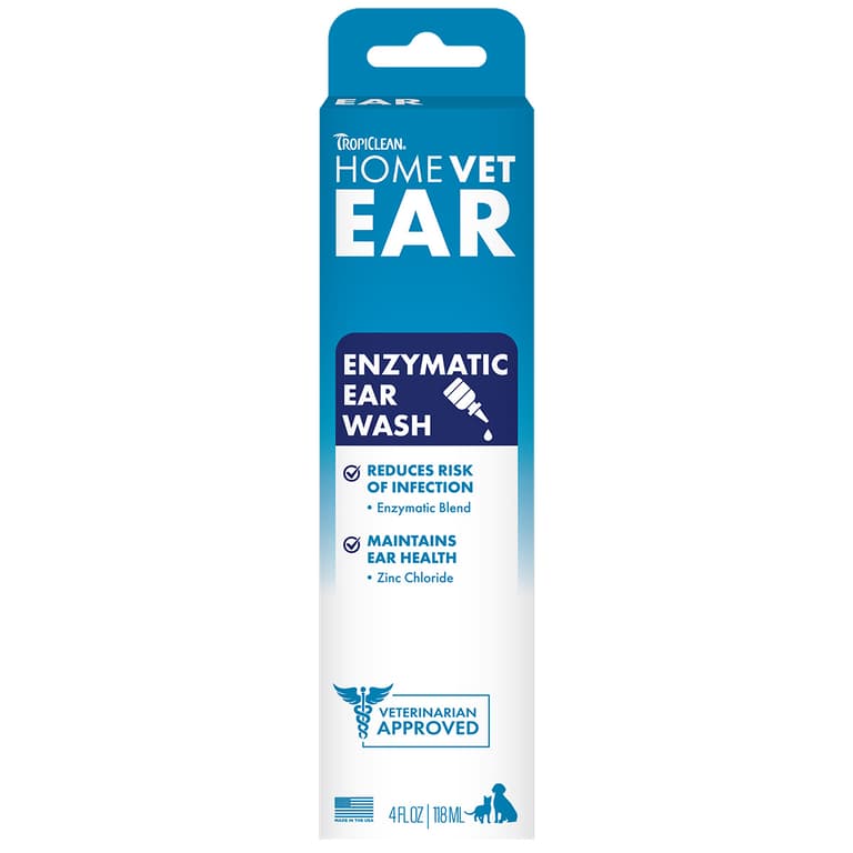 HomeVet Enzymatic Ear Wash for cats and dogs. Features an 8-enzyme blend to gently clean, relieve itch, reduce odor, and clear wax. Alcohol-free, non-stinging, and safe for daily use. Ideal after baths or swimming to help prevent irritation and moisture buildup.Specifications