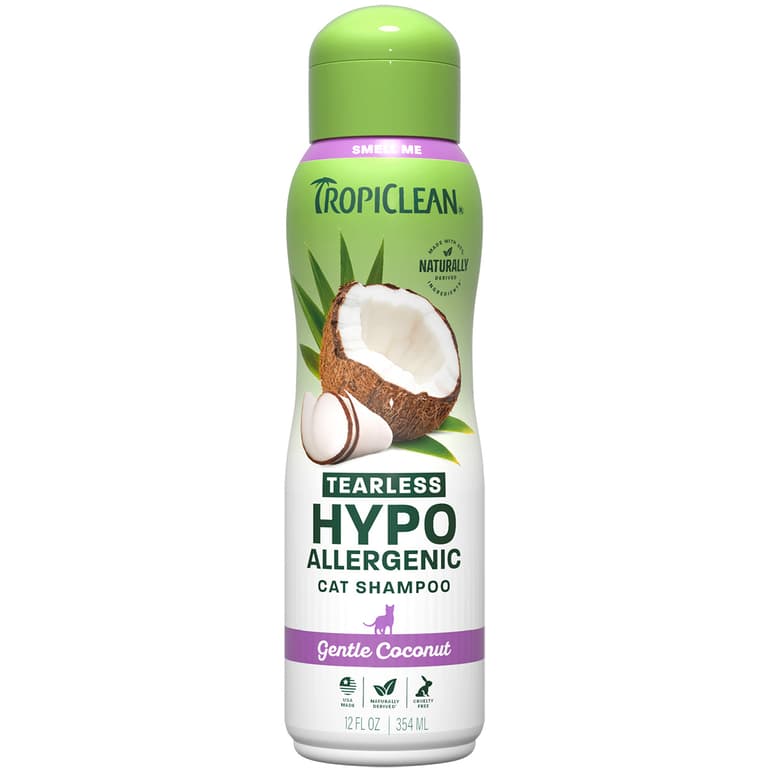 TROPICLEAN TEARLESS HYPOALLERGENIC CAT SHAMPOO cleanses your cat's sensitive skin and coat leaving it soft and healthy. This pH-balanced formula is perfect for kittens as it gently cleanses and moisturizes the skin and coat with a soothing lather. Your cat will feel refreshed and ready for cuddles!Specifications