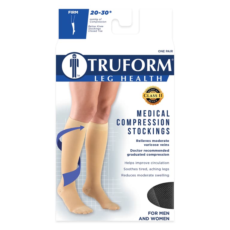 Designed to help relieve conditions associated with poor circulation. Truform medical stockings feature classic styling and a smooth knit texture fabric that conceals unsightly blemishes. For men and women.Specifications