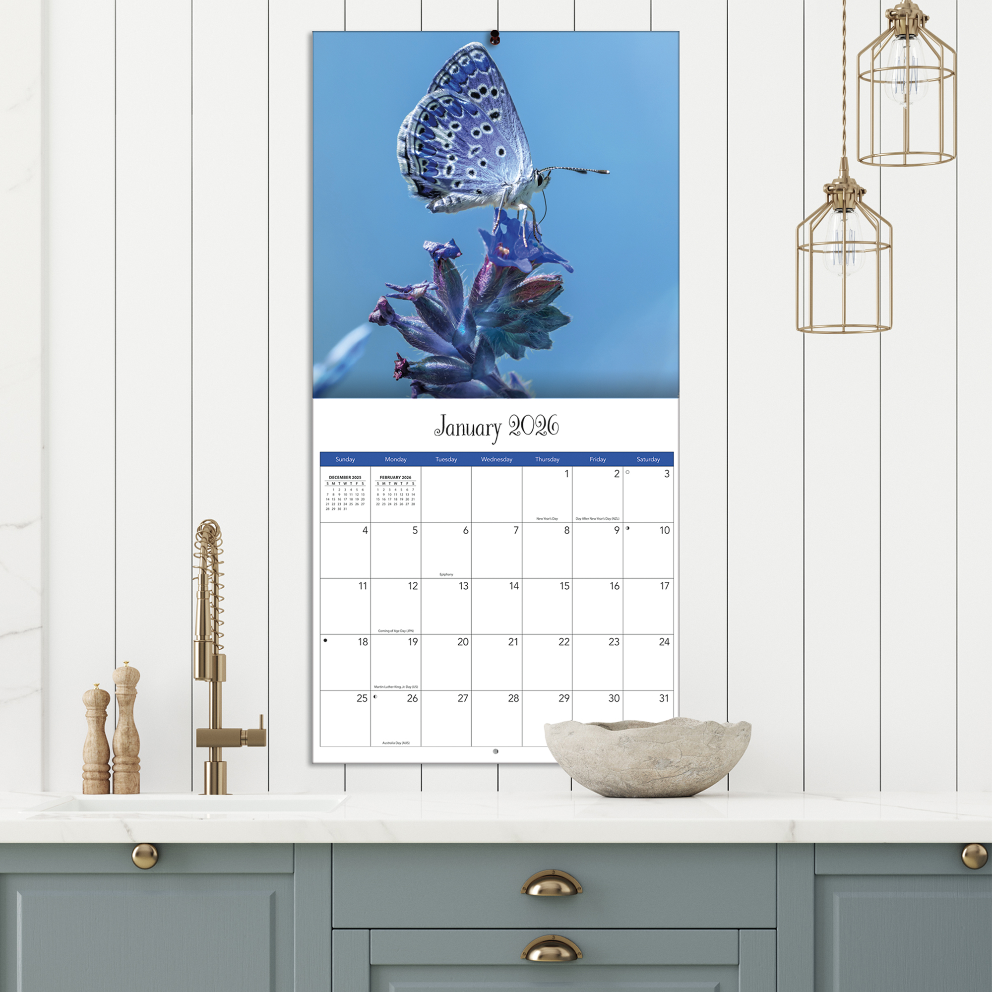12"w x 24"h (opened); 12-month format (January - December 2026); Bonus page featuring September - December 2025; Calendar is plastic-free & 100% recyclable; Printed with soy ink