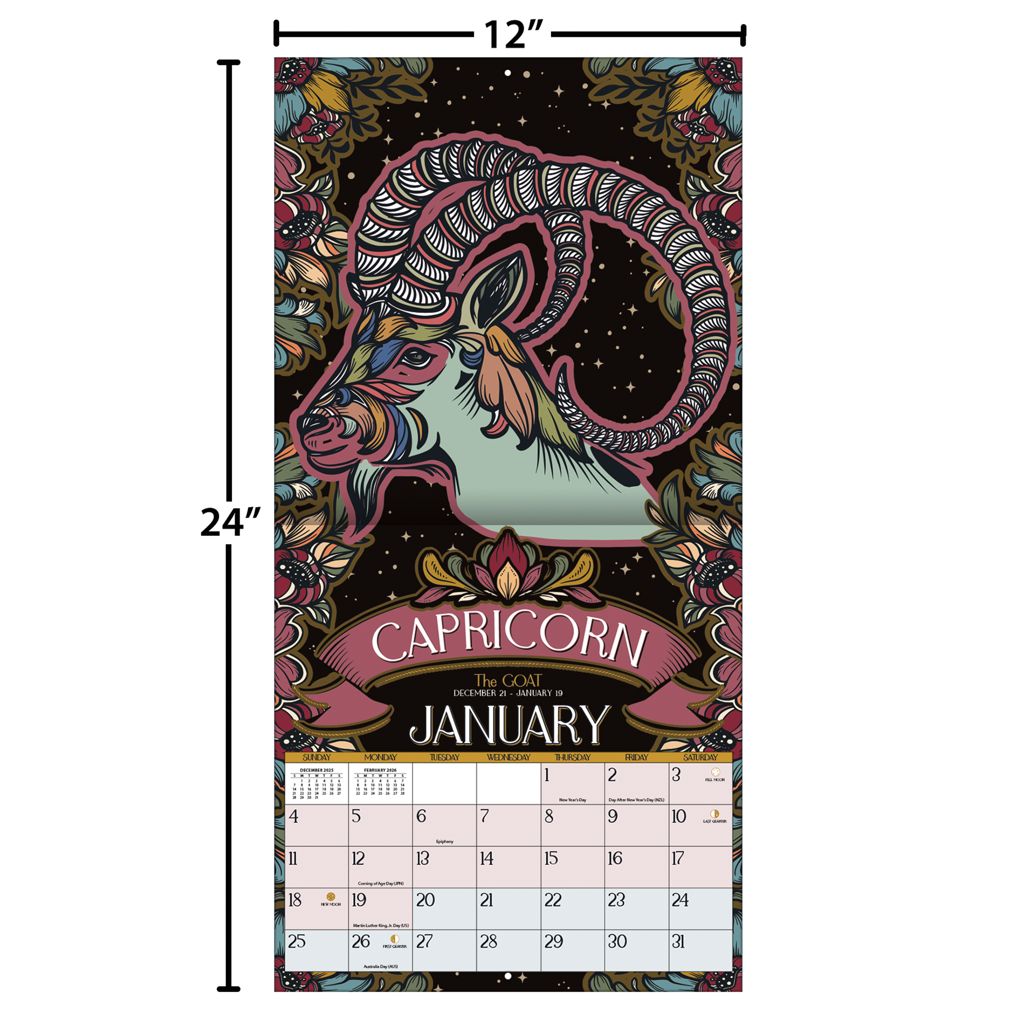 12"w x 24"h (opened); 12-month format (January - December 2026); Bonus page featuring September - December 2025; Calendar is plastic-free & 100% recyclable; Printed with soy ink