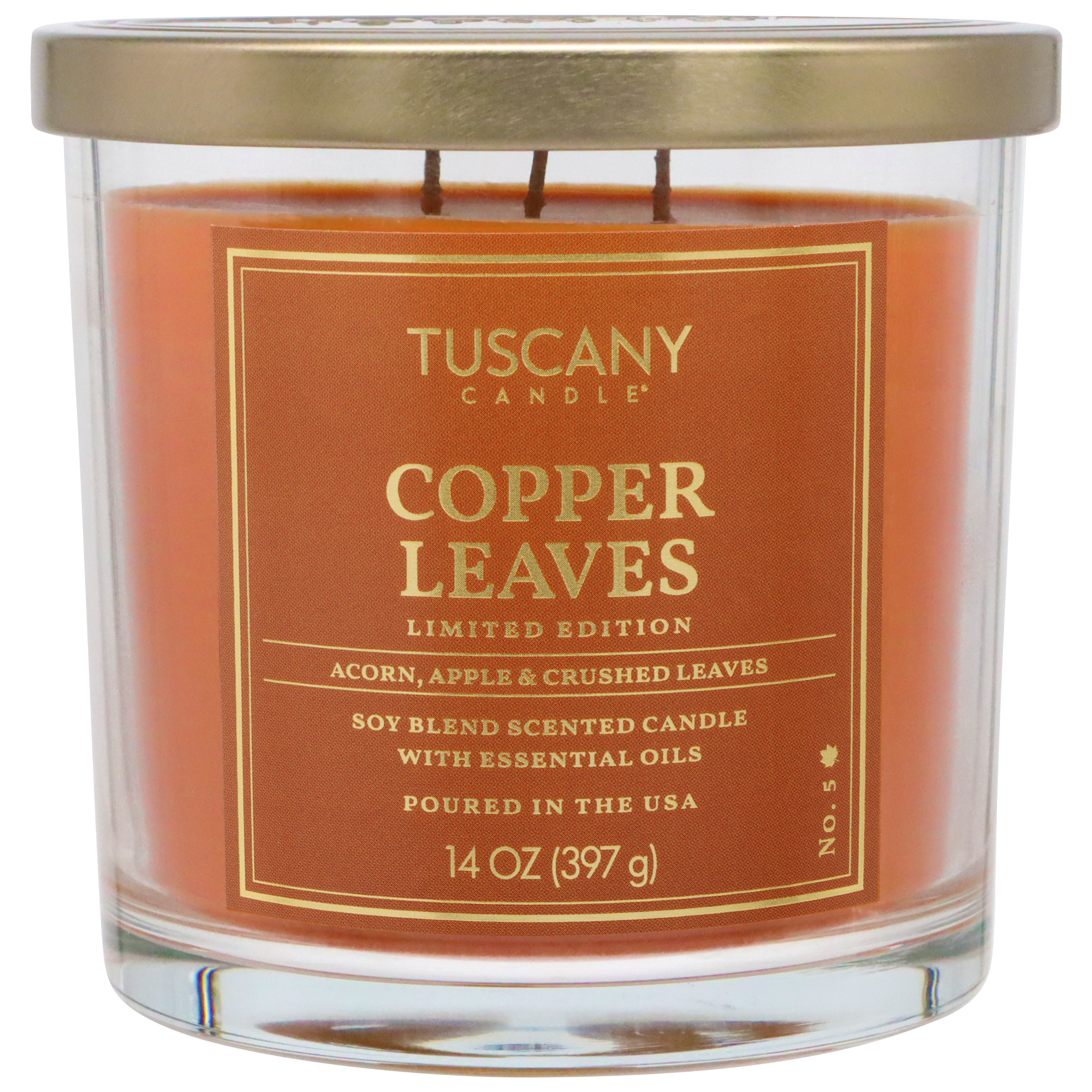 Whether you're creating a centerpiece or decorating your mantel, this 14-oz. Tuscany Candle is a stylish addition to any room. This glass jar is loaded with fragranced wax that creates a relaxing and welcoming environment for all to enjoy.Specifications