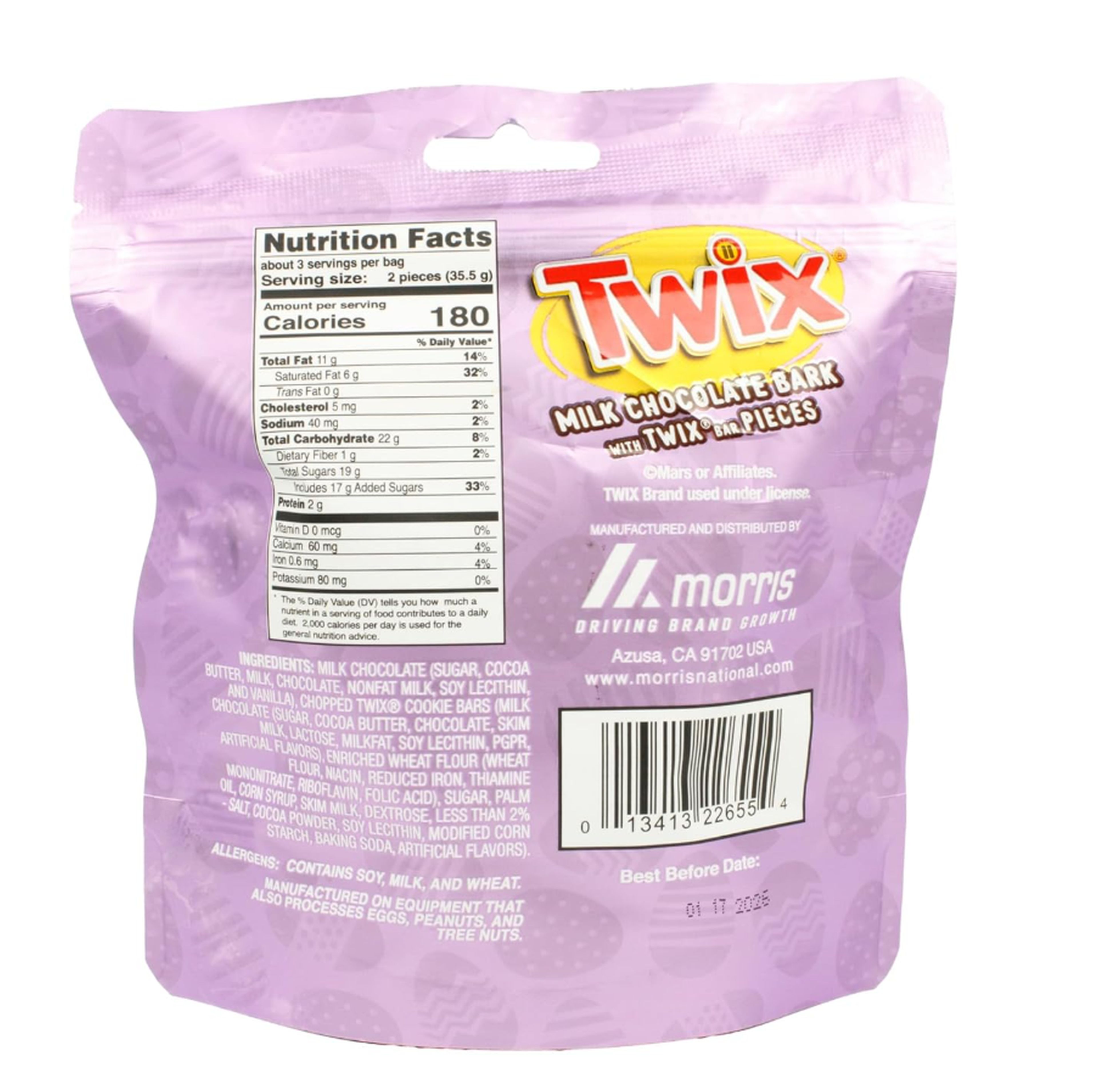 TWIX MILK CHOCOLATE BARK IS EVERYONES FAVORITE TWIX CANDY BAR BUT IN PIECES AND WRAPPED IN EASTER PACKAGING. THIS CHOCOLATE BARK IS PERFECT FOR CANDY DISHES AND EASTER GATHERINGS.Specifications