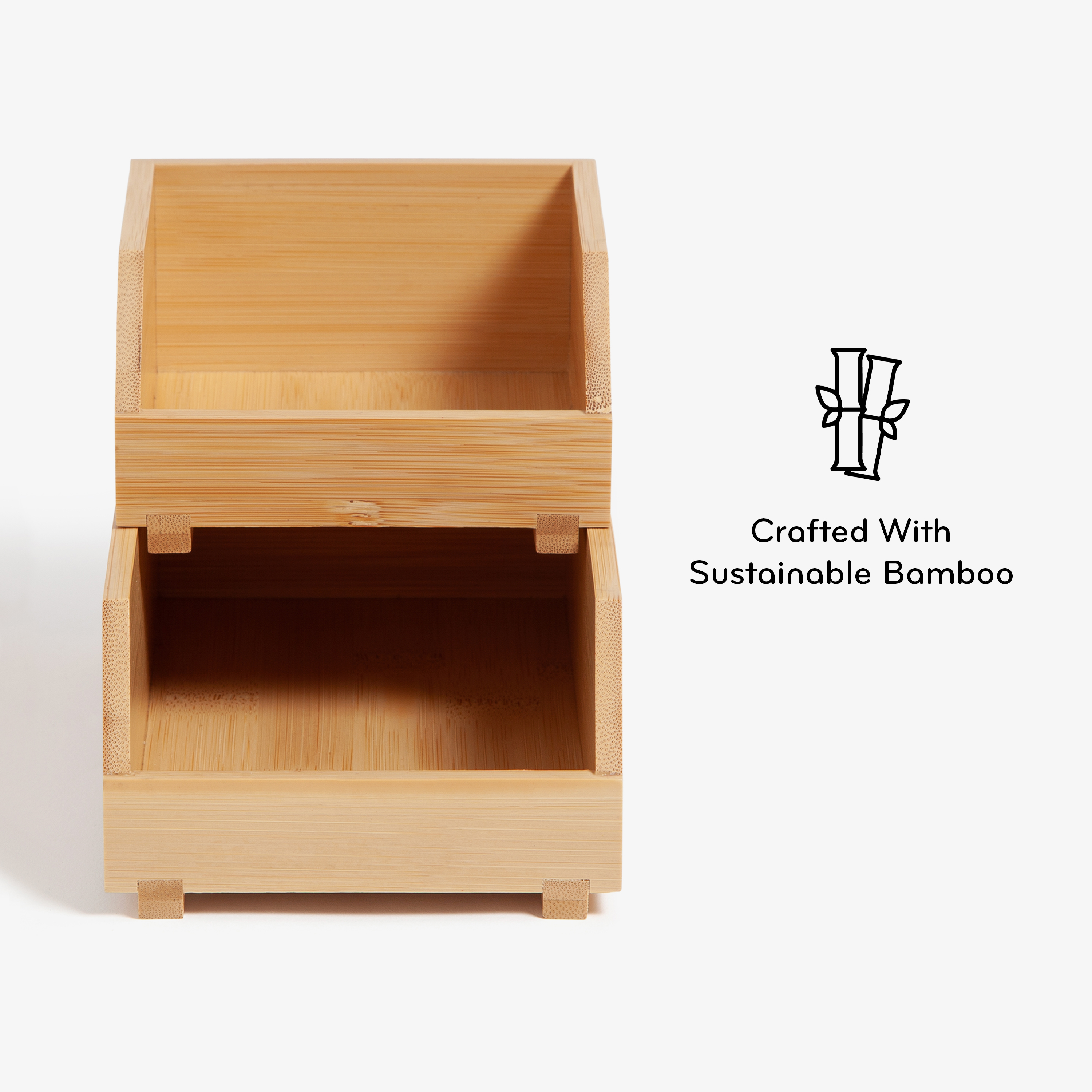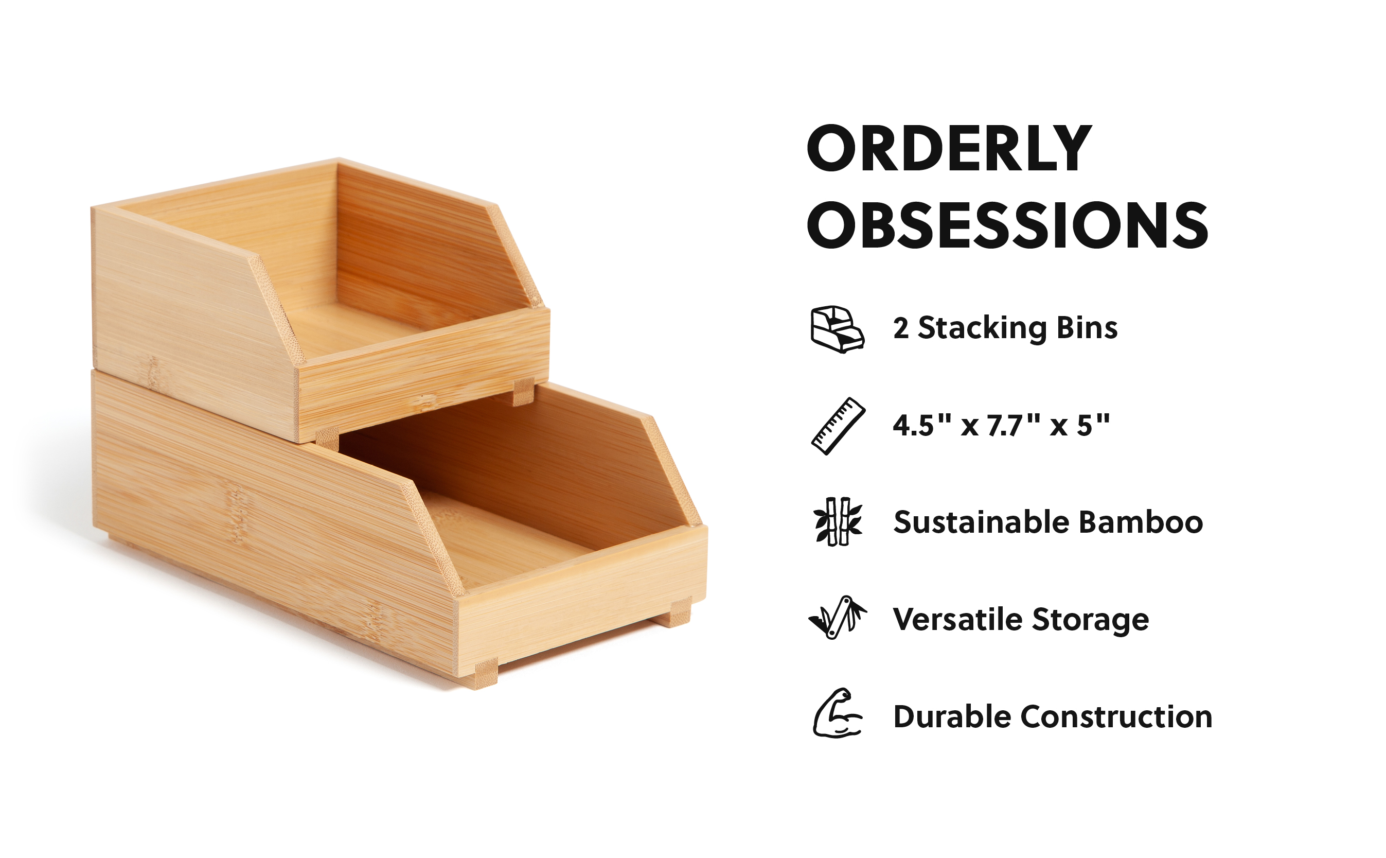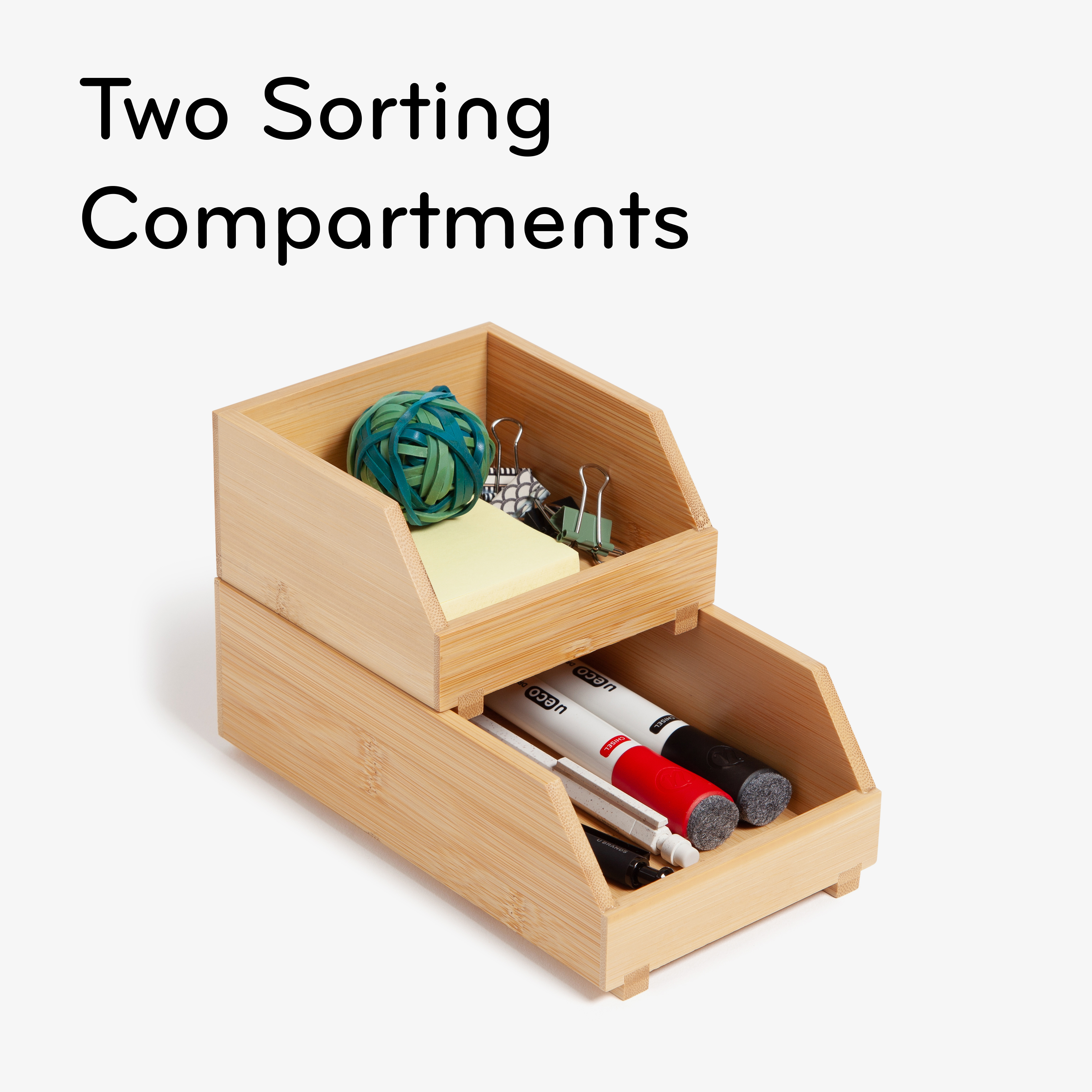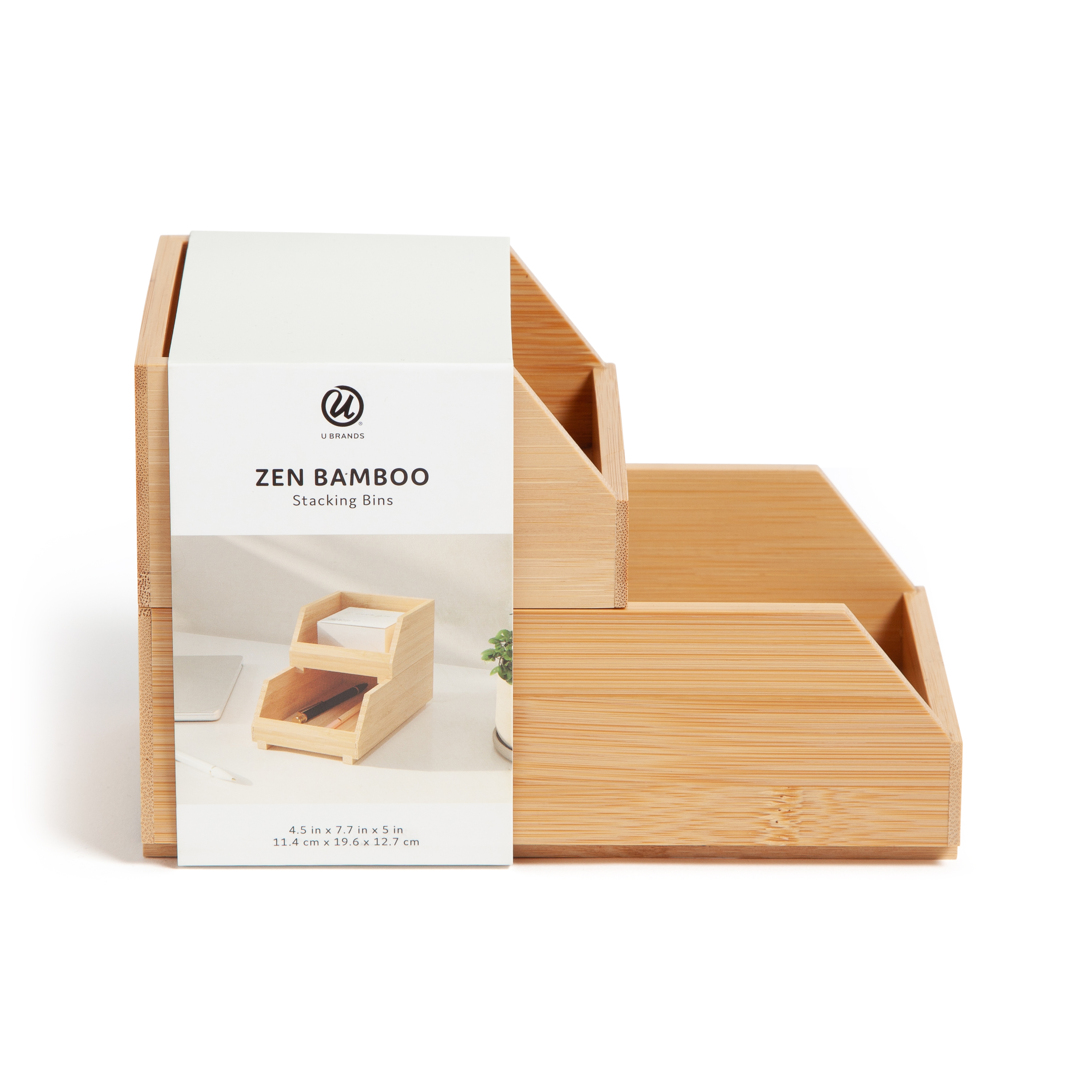 Bring a sense of calmness and clarity to your day by organizing with U Brands Zen Stacking Bins. These open storage bins made from sustainable bamboo infuse a Zen-like charm to complement any decor beautifully. Mindfully designed to keep the clutter out of sight for unwavering focus. Mix and match other items in the Zen Collection for the complete, serene look.Specifications
