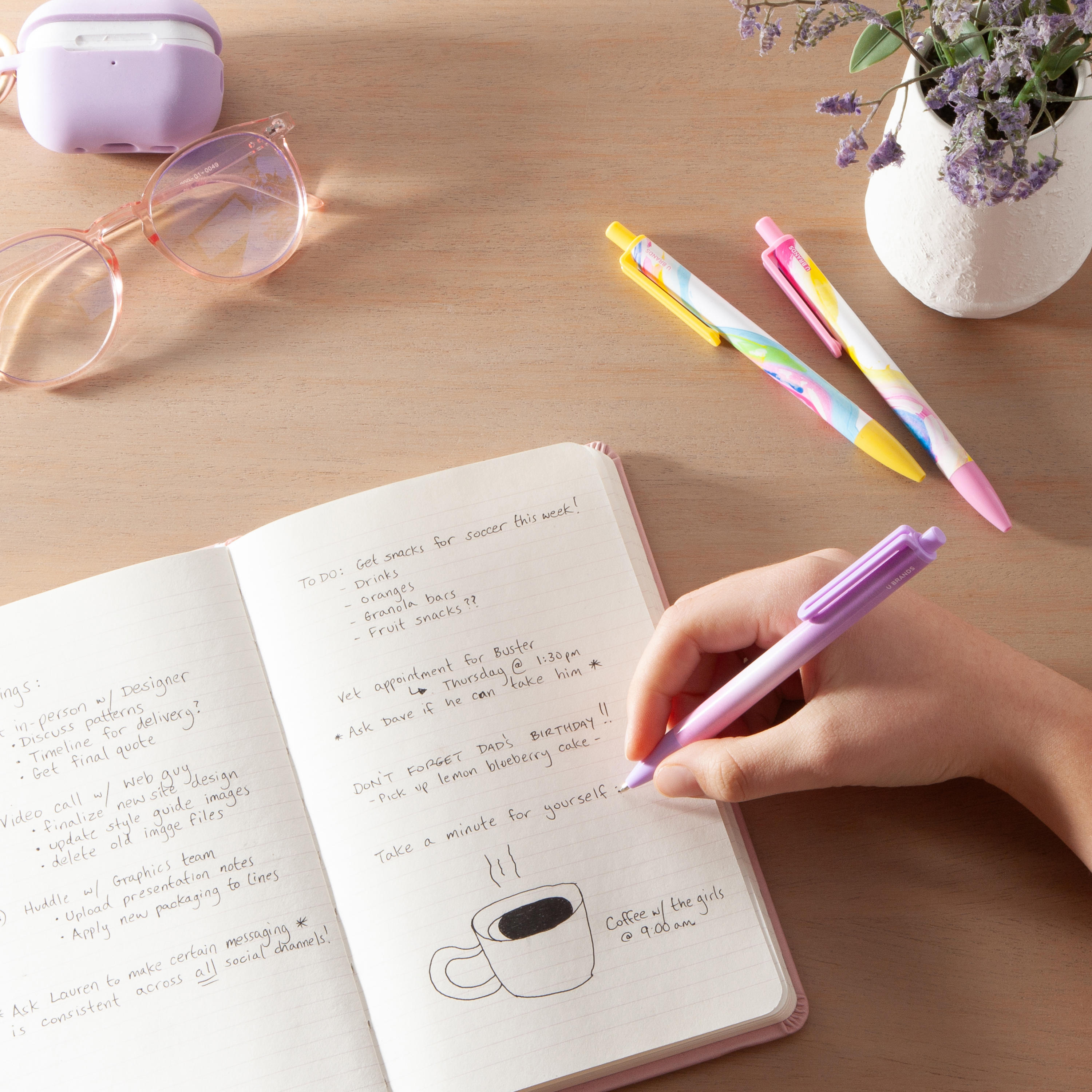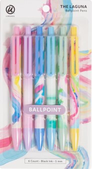 Elevate your writing style and showcase your unique self with U Brands Laguna Ballpoint Pens. With assorted Wavy Paint prints and our signature UClip, these pens will surely add a sophisticated touch to any stationery ensemble. The Laguna Pen's lightweight construction and bold (1 mm) point make it comfortable and reliable. Write effortlessly with bold lay-down in black ink. Perfect for vibrant notes and everyday writing, these pens bring a touch of creativity to your at-home, school, office, or on-the-go writing needs.Specifications