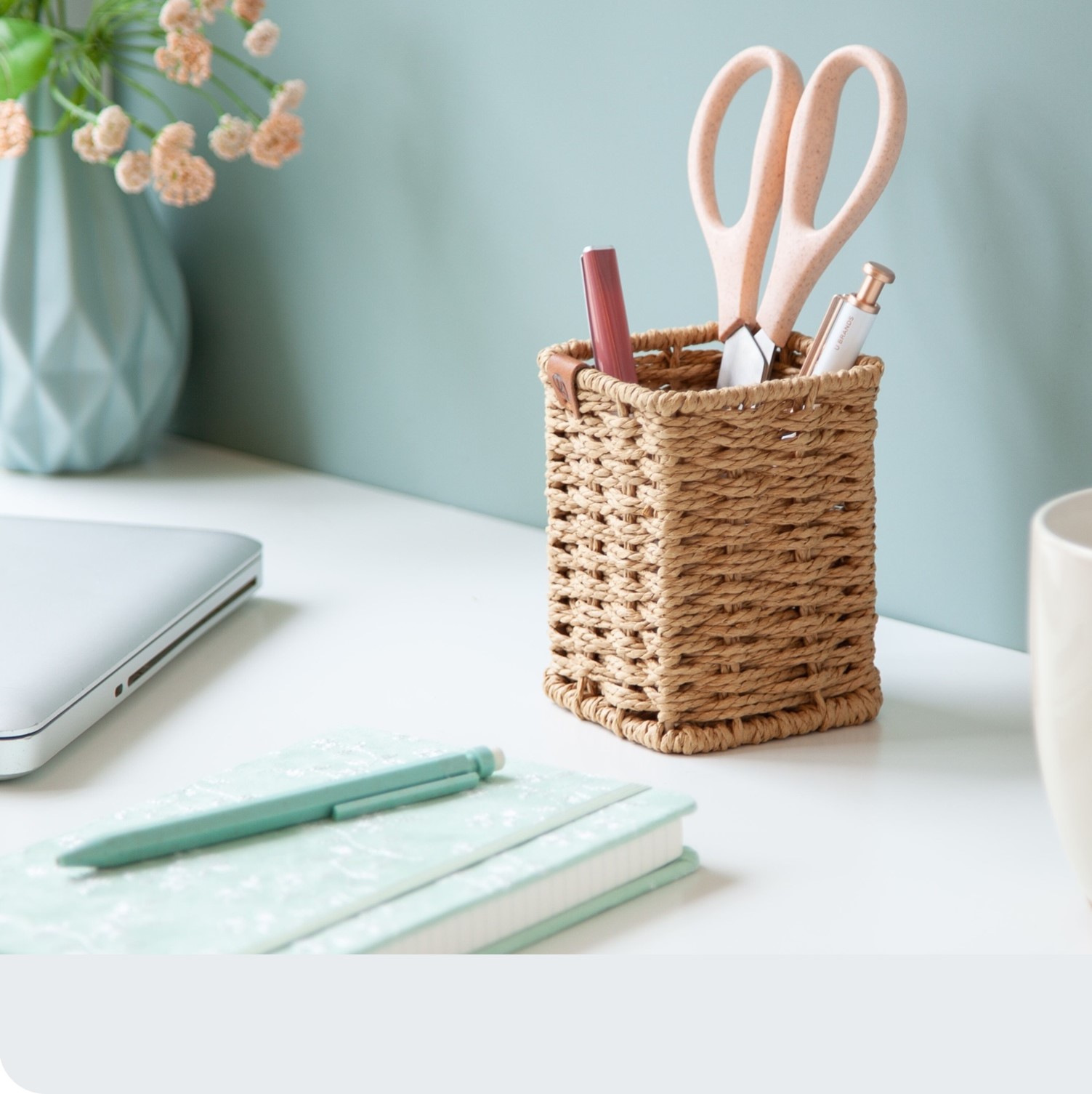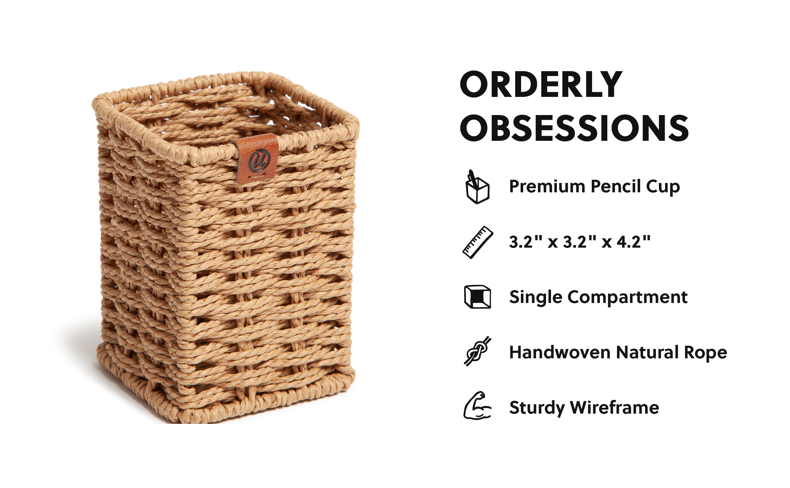 The U Brands woven desktop collection features handwoven natural materials over a sturdy wire frame to bring stylish texture and functional organization to your home or office. The U Brands woven cup is an effortless complement to any desk or landing space, and is perfectly suited to holding pens, pencils, markers and even scissors while adding a touch of texture and style.Specifications