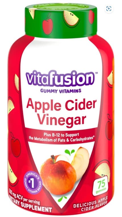 New from America's #1 Gummy Vitamin Brand, vitafusion Apple Cider Vinegar gummy vitamins are Apple Cider Vinegar made delicious! These gummies are packed with 500mg Apple Cider Vinegar per serving, plus B-12 for Energy Metabolism Support. With no artificial flavors or sweeteners, no gluten or dairy, no high-fructose corn syrup, and no synthetic (FD&C) dyes, for a vitamin experience you can feel good about!500mg Apple Cider Vinegar per servingPlus B-12 for Energy Metabolism SupportFrom America's #1 Gummy Vitamin BrandDelicious, Natural Apple Cider FlavorContains NO high-fructose corn syrup, NO gluten, NO dairy, NO synthetic (FD&C) dyesSpecifications