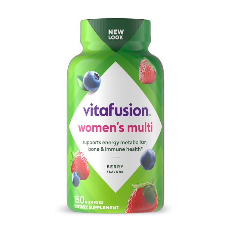Vitafusion Women's Multivitamin gummy is a daily multivitamin formulated to address the health needs of women. These delicious gummies combine essential vitamins and minerals with natural fruit flavors.A two-gummy serving of Vitafusion Women's multivitamin:Supports energy metabolismSupports bone healthSupports immune systemSupports absorption of calciumNatural berry flavors.BiotinCalciumFolic AcidIodineVitamin AVitamin B3 Vitamin B6Vitamin B-12Vitamin CVitamin DVitamin EZincSpecifications
