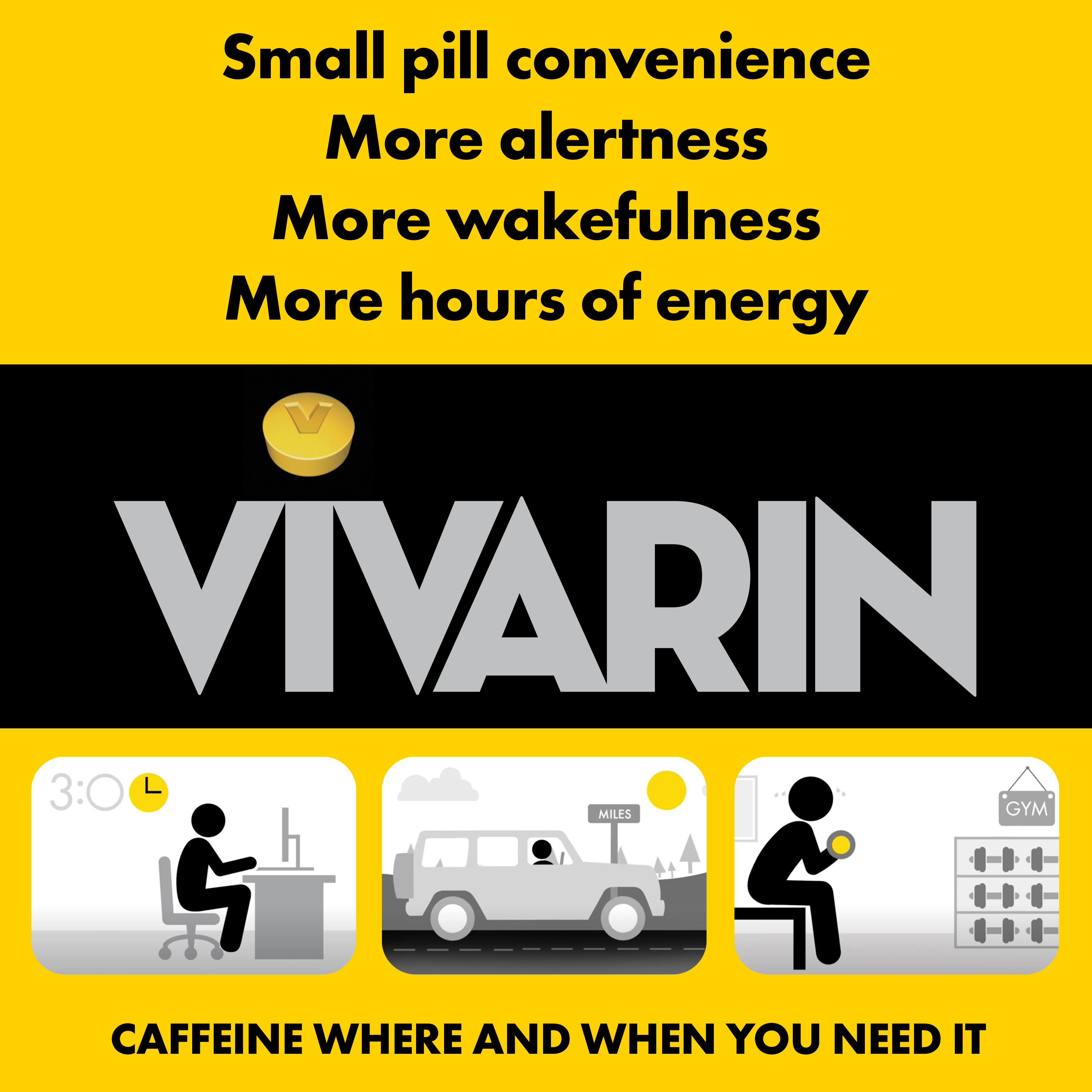 Need a FDA approved ingredient and dose to stay awake? Vivarin caffeine pills give you the mental boost you need to power through your day. Whether you're a busy working professional, a parent juggling children and work, a student working to make the grade, a day or night shift worker getting the job done, or someone who needs more energy to make progress with their fitness goals, Vivarin caffeine tablets are a safe and effective way to increase your alertness, wakefulness and more hours of energy. Vivarin energy pills for men and women contain 200mg of caffeine, about the same amount as a cup of coffee, but without the sugar, extra calories, herbs or hidden mystery ingredients. Vivarin caffeine pills are a convenient, fast, and safe way to boost your mental energy. Revive with Vivarin!SAFE AND EFFECTIVE: FDA approved ingredient and dose. Vivarin contains 200mg of caffeine, and only caffeine, about the same amount as a cup of coffeeMENTAL ENERGY PILLS FOR MEN AND WOMEN: Vivarin caffeine tablets are perfect when you want the caffeine without the problems that come with coffee, sugar, and caloriesCAFFEINE WHERE AND WHEN YOU NEED IT: Take Vivarin energy supplements to stay awake, increase alertness, wakefulness, and experience more hours of energyNO SUGAR, NO CALORIES, NO HIDDEN INGREDIENTS: Vivarin caffeine tablets contain only caffeine, so none of the problems associated with coffee or other energy supplements like energy drinksCONVENIENT: Vivarin caffeine pills are small for on-the-go convenienceSpecifications