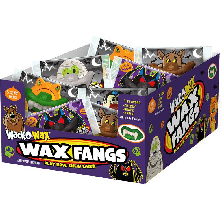 WACK-O-WAX CANDY FANGS COMES IN THREE FRUITY FLAVORS INCLUDING CHERRY GRAPE AND APPLE. THESE ARE IDEAL FOR ANY HALLOWEEN CELEBRATION.Specifications