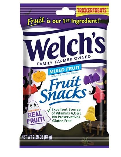 WELCHS HALLOWEEN FRUIT SNACKS FEATURE A 2.25 OZ BAG OF FRUIT SNACKS THAT ARE SHAPED LIKE ALL THE HALLOWEEN CLASSICS LIKE GHOSTS HAUNTED HOUSES WITCHES JACK O LANTERNS AND BATS. THESE ARE THE PERFECT GRAB AND GO SNACK FOR THE SPOOKY SEASON.Specifications
