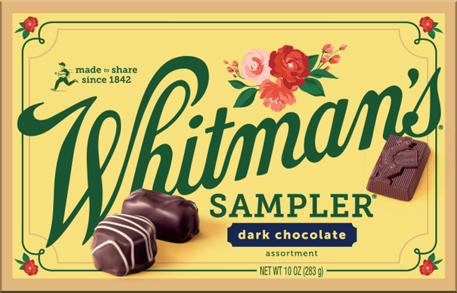 Whitman's Samplers are made for sharing. We celebrate the big and small things with family and friends. Whitman's Samplers makes those celebrations a bit sweeter. Flavors include: Dark Chocolate Cashew Clusters, Dark Chocolate Peanut Caramel, Dark Chocolate Caramel, Dark Chocolate Coconut Cream, Dark Chocolate Chocolate Butter Cream, Solid Dark Chocolate Messenger, Dark Chocolate Nut Fudge, Dark Chocolate Vanilla Cream, Dark Chocolate Covered Peanuts, Dark Chocolate Nut Caramel, & Dark Chocolate Orange Cream.Specifications