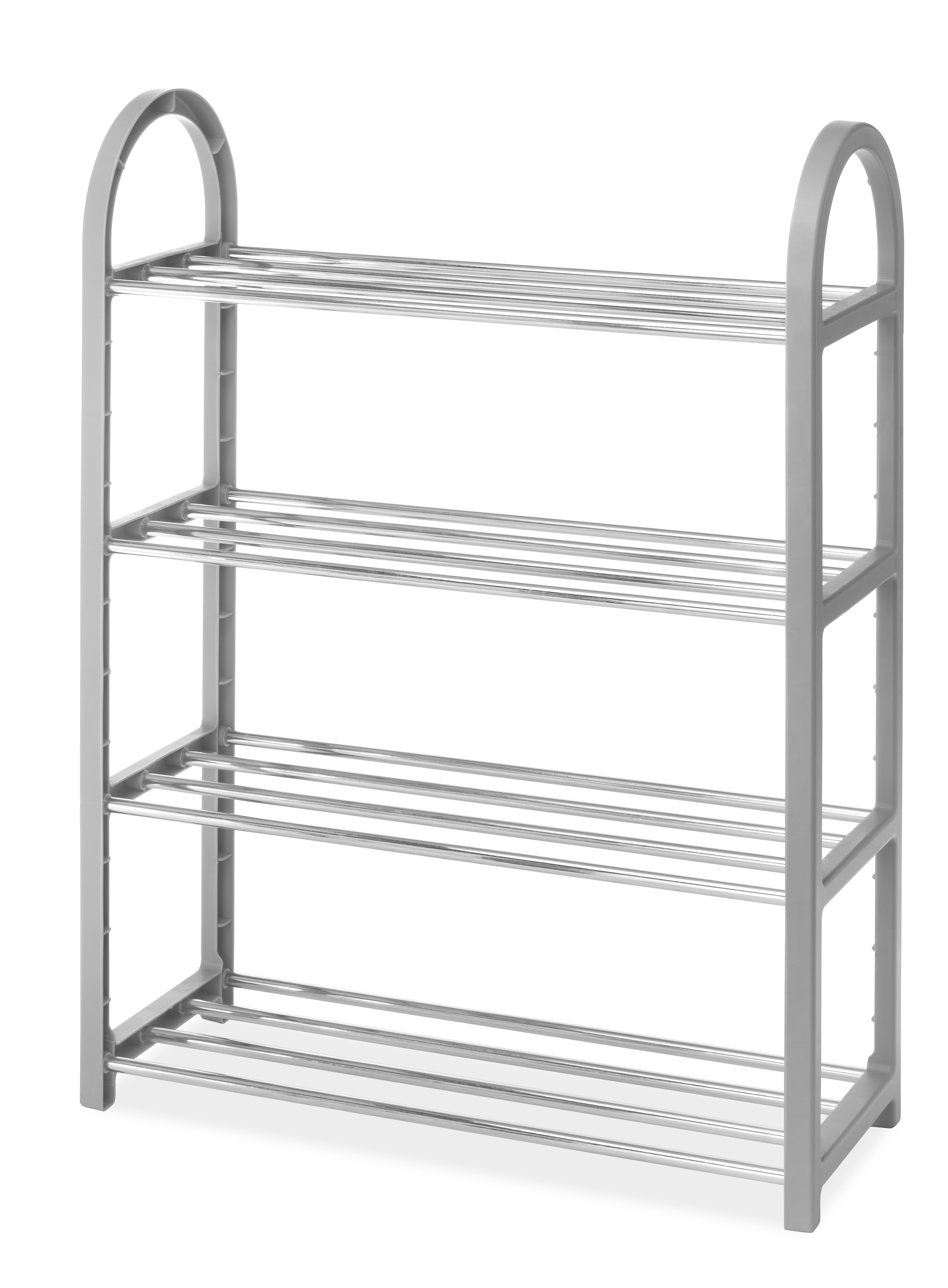 This 4-tier closet shelf organizer can be used for a variety of items including shoes sweaters accessories folded clothes and much more. A must for an any closet the chrome plated shelves allow easy viewing of the items from any angle. Great for a closet foyer mud room bedroom kids room bathroom garage laundry room and more.Specifications