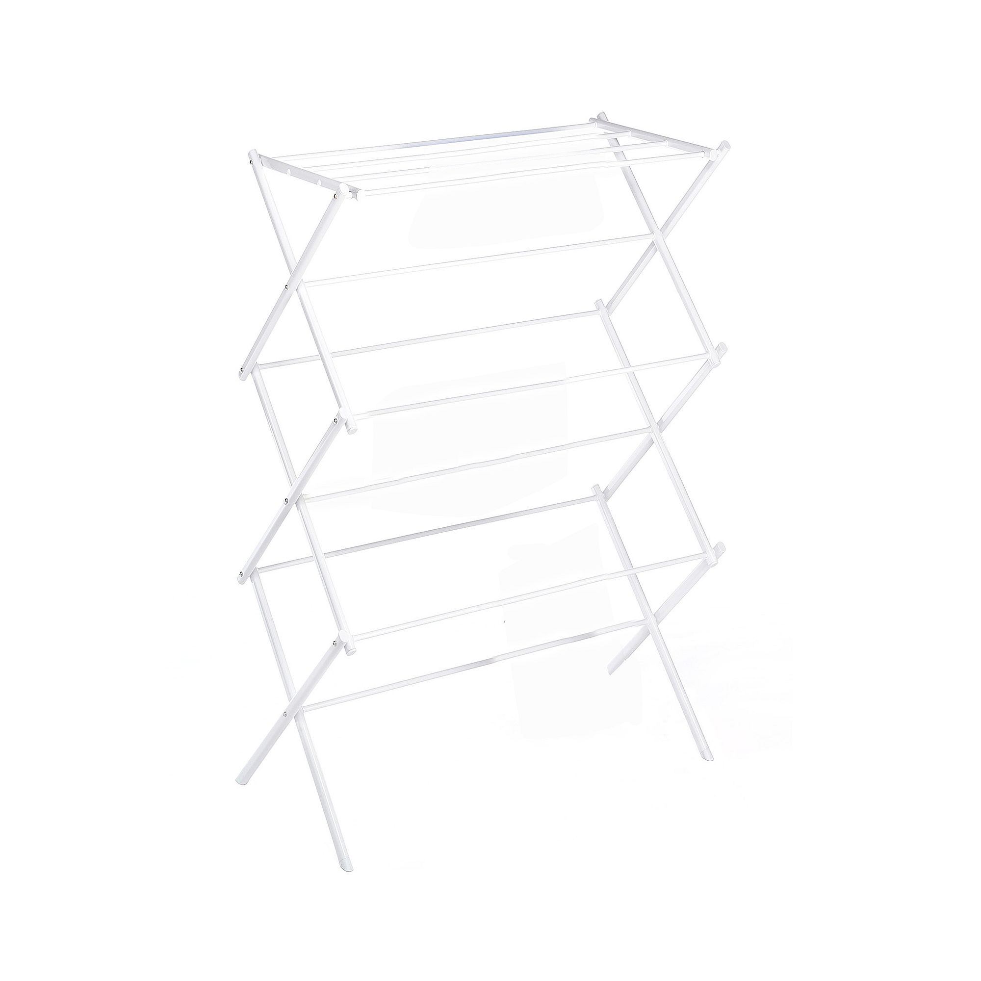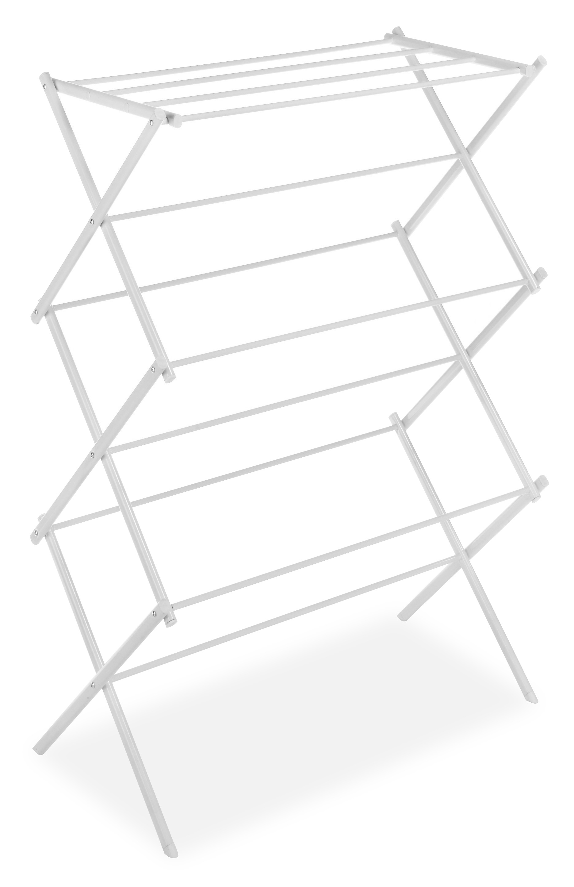 Features top shelf for sweaters or other flat drying items & 11 bars for hanging clothes; Made of a rust-resistant epoxy coated metal frame; No assembly necessary just open and drop into position; The drying rack easily folds down and collapses in an accordion-style allowing you to store the rack in compact spaces; Whitmors folding drying rack provides space for up to 40 lbs. of clothing