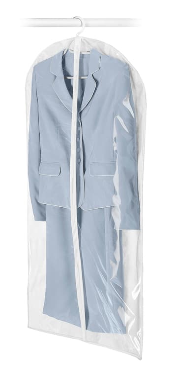 Breathable fabric back panel allows air to circulate and keeps stored items fresh; Dimensions: 24 W x 48 H; hangs in the closet or on a garment rack; Made to last crystal clear vinyl and reinforced seams for additional strength and support; No assembly is required; Offers storage & protection from dust & damage; The see-through front cover provides a clear view of items when the bag is zipped