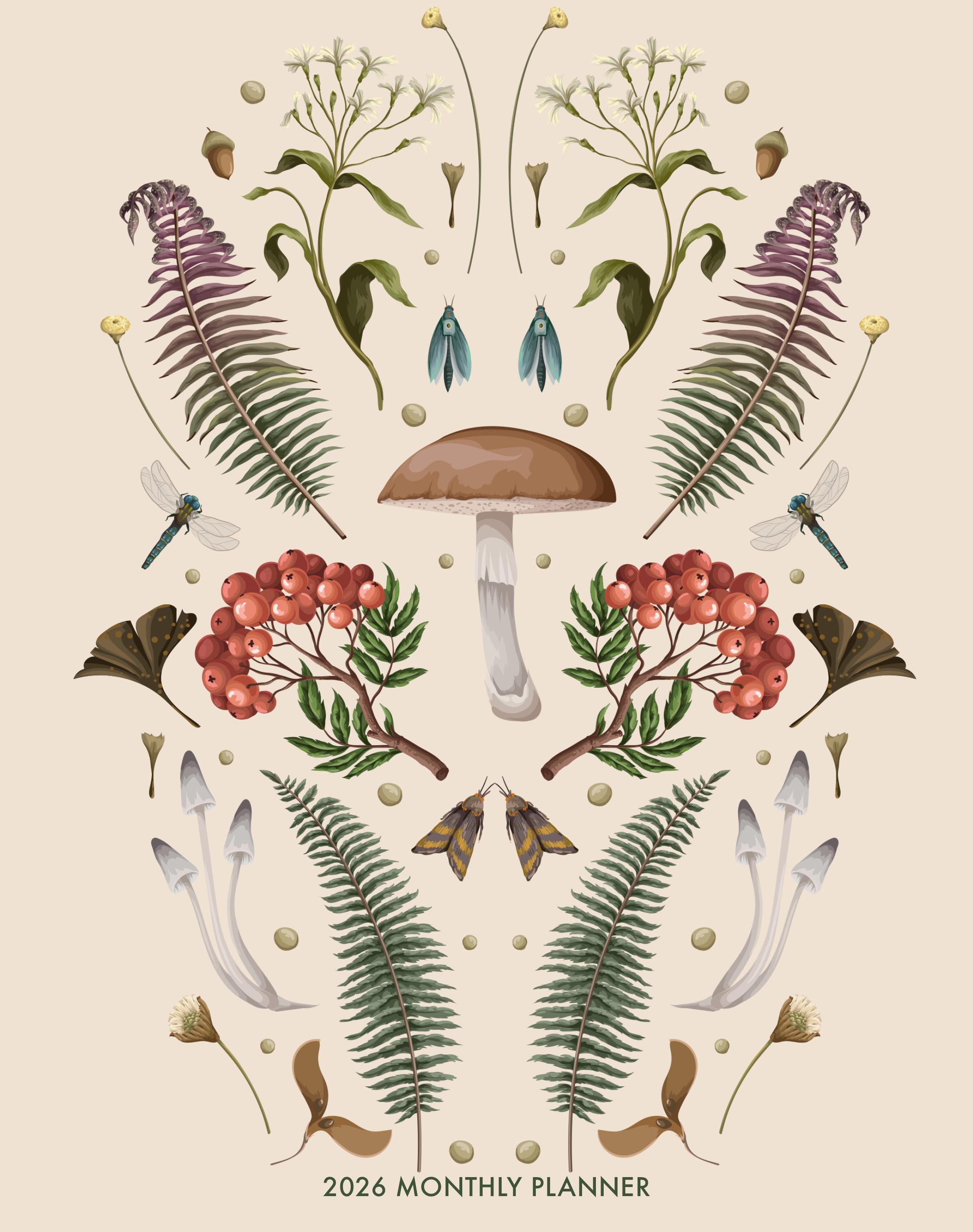 EARTHLY DELIGHTS Adorned with charming illustrations of mushrooms, flora, and fauna, the Magic Mushroom Monthly Planner captures the whimsical beauty of the forest floor, blending nature’s finest details into a delightful organizational tool. Get ready to sprout new ideas and enjoy the fruit of your proactive efforts from January to December 2026.Specifications