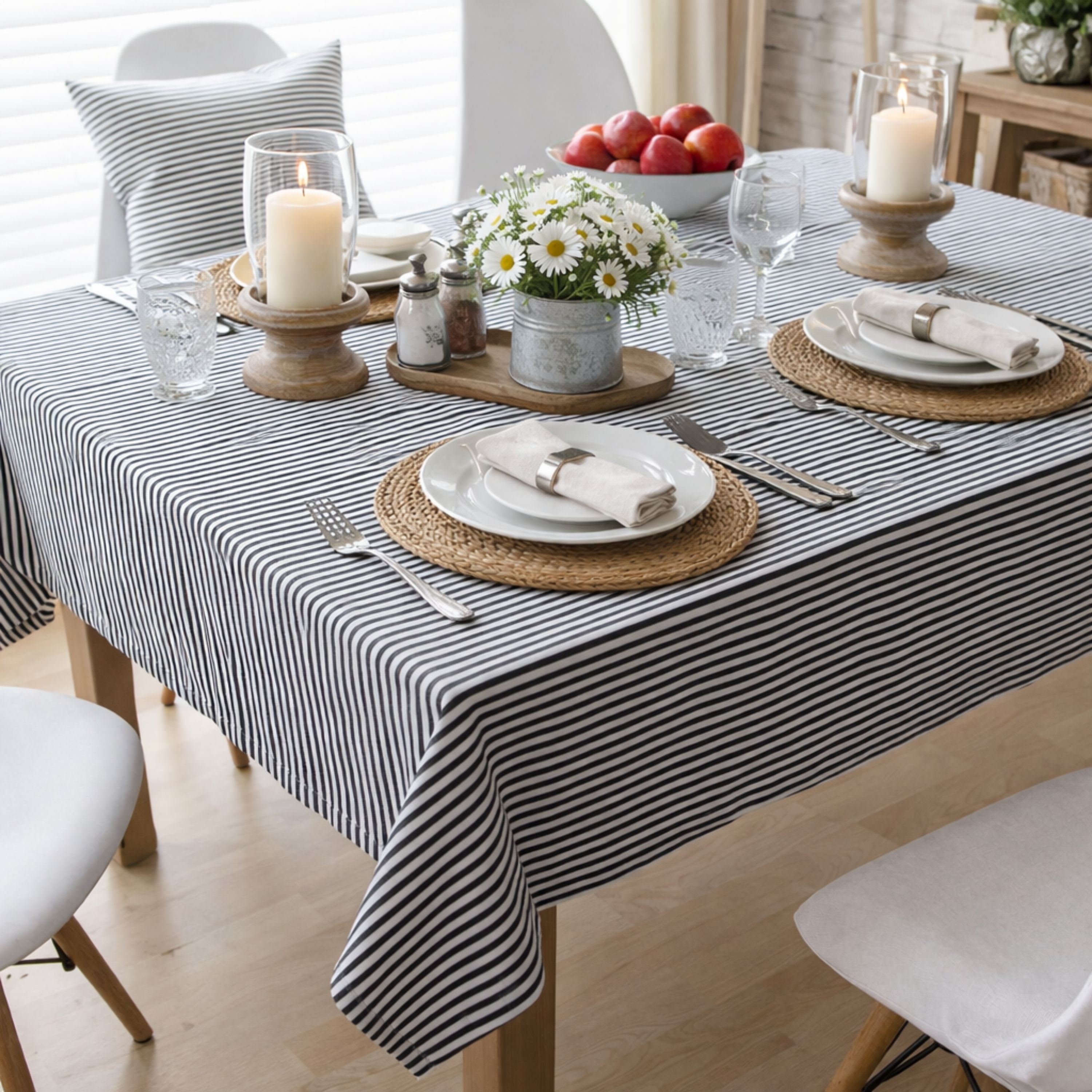 Easily laundered; Indoor/Outdoor Yarn Dyed Fabric Tablecloth; Perfect for Summer BBQs and Family Gatherings