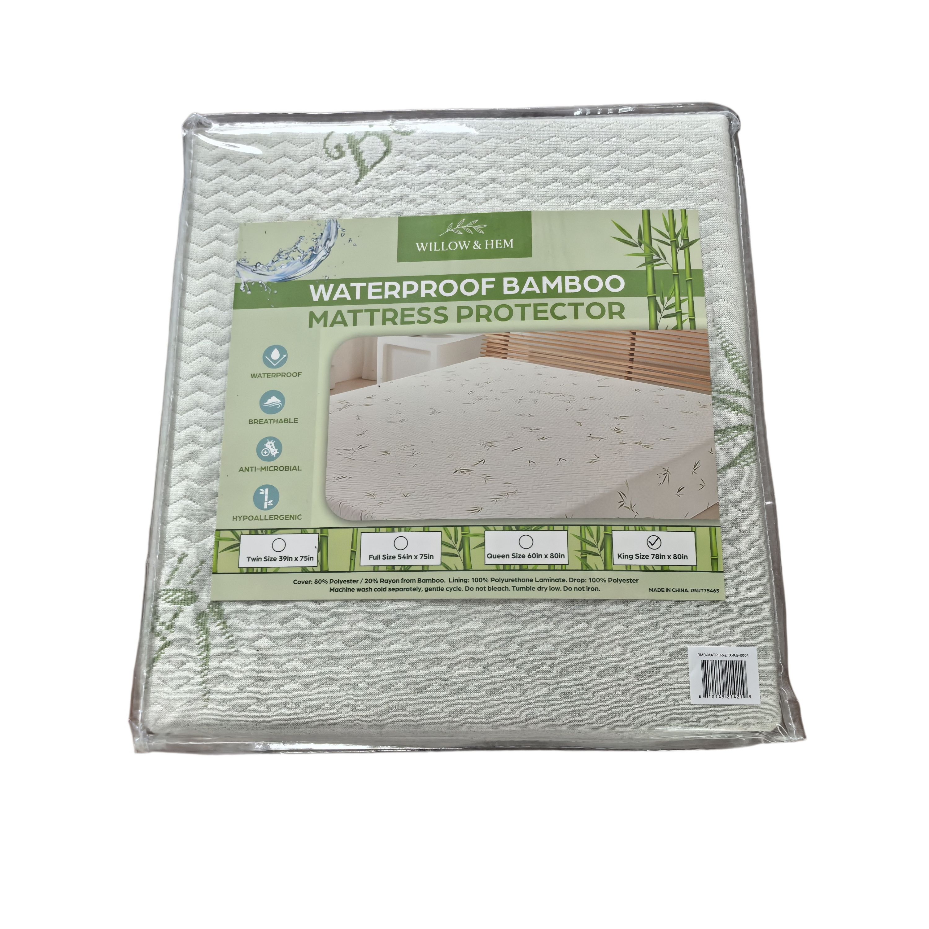 Shop by Department | Home | Bedding | Mattress Toppers & Protectors | WILLOW & HEM BAMBOO MATTRESS PROTECTOR, KING