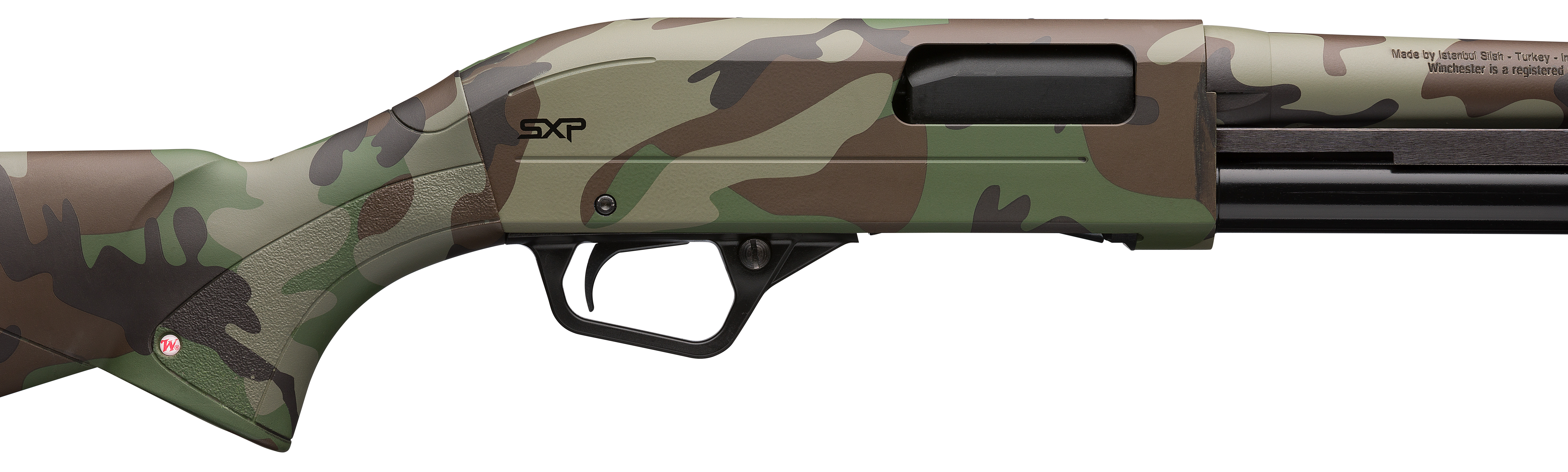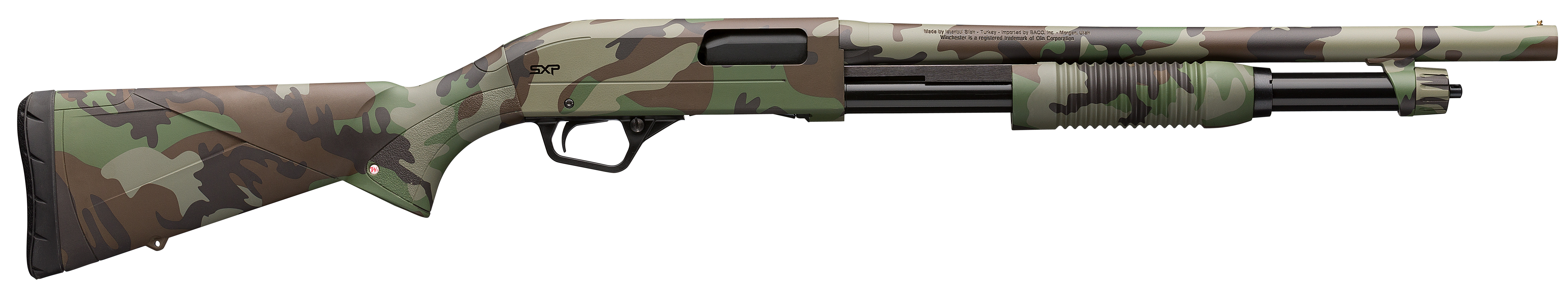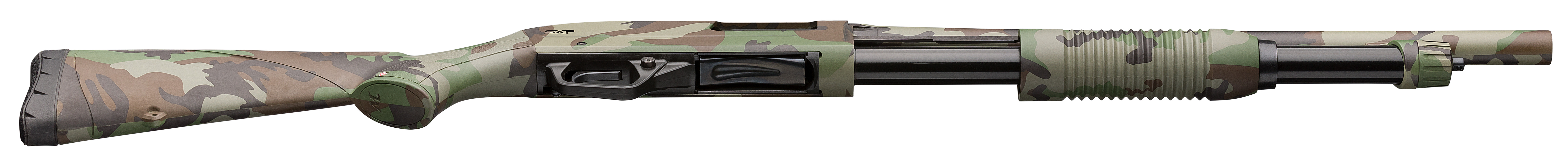 12 ga,; 13.75 lop; 18 in barrel; 3 in chamber; 5+1 capacity; camoflauge; crossbolt safety