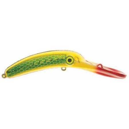 Dives up to 14; Diving depth depends on current speed line diameter and amount of let-out; Extra deep diving; Ideal in water speed up to 3-1/2 mph; Rigged with number 4 treble belly hook and number 3 treble tail hook; Salmon Steelhead Trout and Walleye plug; Skip Beat action; Strike producing