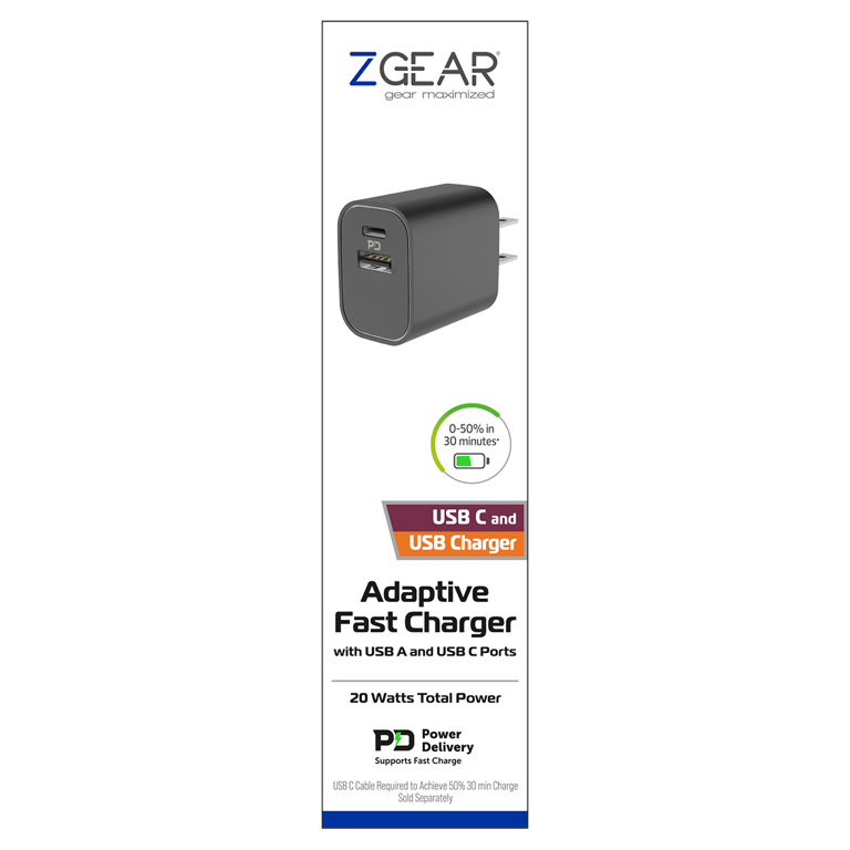 Wall Charger USB C 20W with Power Delivery & USB A 15 Watt (3 Amp) Dual Output with Fixed AC Plug-BlackSpecifications