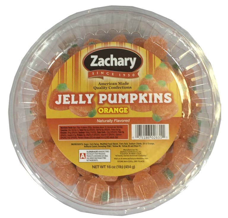 ZACHARY JELLY PUMPKINS ARE SOFT CHEWY SUGAR SANDED BURSTING WITH LOADS OF ORANGE FLAVOR AND PERFECT FOR THE FALL SEASON.Specifications