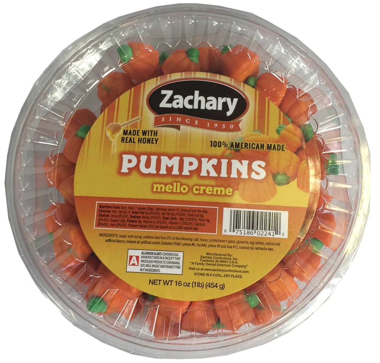 ZACHARY MELLOW CREME PUMPKINS ARE MADE WITH REAL HONEY AND HAVE A SMOOTH VELVETY TEXTURE THAT IS SURE TO PLEASE ANY CROWD.Specifications