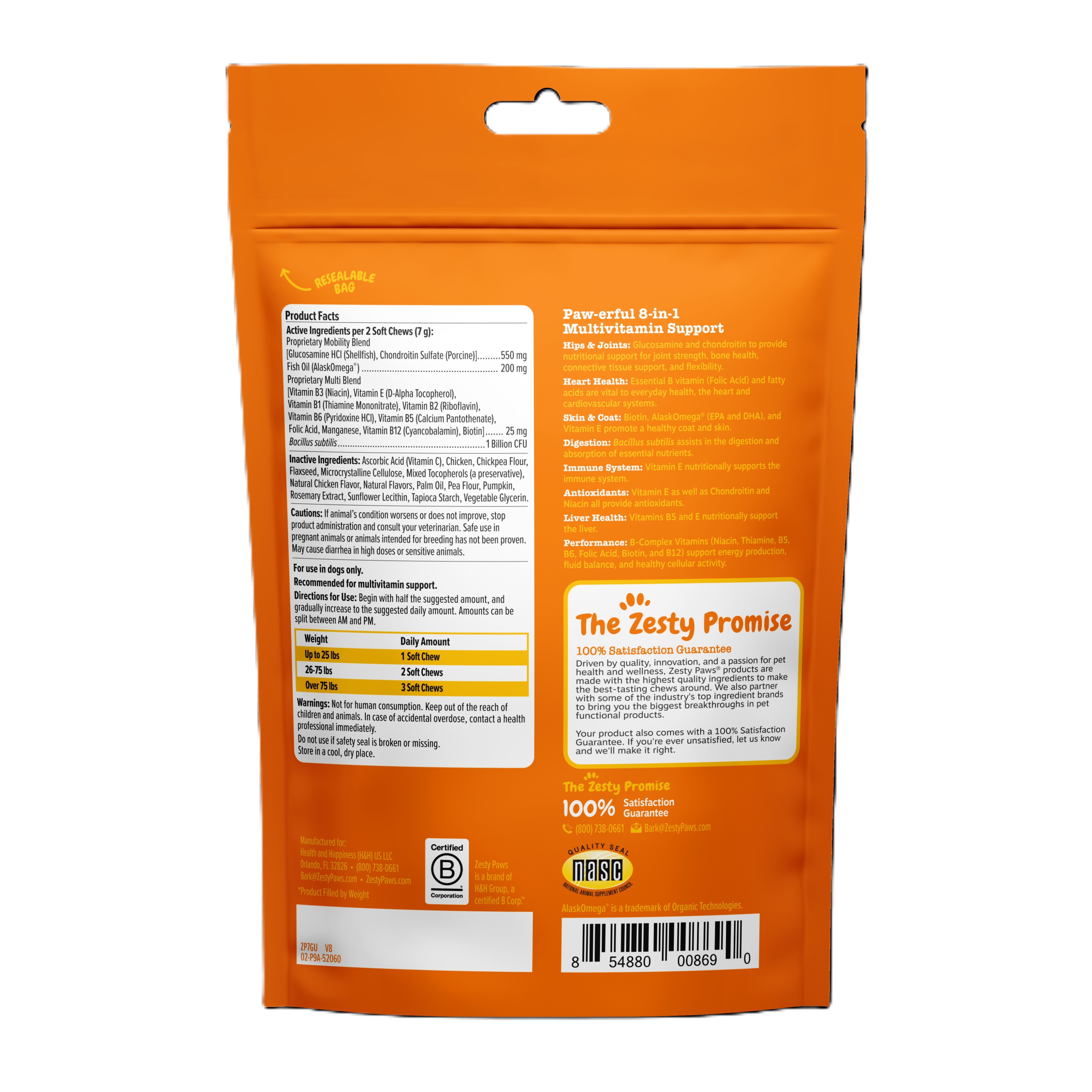 Pawsome 8-in-1 Support! - Zesty Paws 8-in-1 Multivitamin Bites are nutritional supplements packed with ingredients that support eight areas of well-being for any small, medium, and large breed; Supports Mobility & Performance - Features a Glucosamine Chondroitin duo to support hips and joints, along with B-Complex vitamins to support energy production at a cellular level.