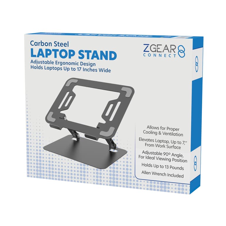 Sleek. Strong. Smart Support for Your Laptop. Give your workspace a serious upgrade with the ZGEAR Metal Slim Laptop Stand. A minimalist essential crafted for style, stability, and superior comfort. Designed for today’s hybrid workers, digital creatives, students, and travelers, this slim yet sturdy stand is your laptop’s perfect partner, wherever you work. Whether you’re tackling your inbox, attending virtual meetings, or editing videos, the ZGEAR Metal Slim Stand helps you do it all with better posture, improved cooling, and an ultra-modern aesthetic. Good posture starts with the right setup. The ZGEAR Metal Slim Laptop Stand lifts your screen to an optimal viewing angle, helping reduce neck, back, and shoulder strain during long hours at your desk or on the go. Whether you're typing, browsing, or binge-watching, you’ll feel the difference immediately. Crafted from premium-grade aluminum, this stand is feather-light yet impressively strong. Its ultra-slim design makes it easy to slip into your backpack, laptop sleeve, or even a handbag, without adding bulk. Carry it anywhere and work comfortably everywhere. The ZGEAR Metal Slim Stand keeps your laptop cooler by allowing unrestricted airflow underneath. This helps prevent overheating and improves performanceespecially when you’re running multiple apps, editing media, or streaming content. Your laptop deserves a secure base. This stand features anti-slip silicone pads on the top and bottom to grip your device and the surface beneath it. No slipping, no slidingjust peace of mind while you work. Whether you’re using a MacBook, Chromebook, or Windows laptop, the ZGEAR Metal Slim Stand has you covered. It’s universally compatible with devices ranging from 10" to 17", including: MacBook Air / Pro, Dell XPS, HP Spectre, Lenovo ThinkPad, Microsoft Surface, ASUS, Acer, and more! Pair it with a wireless keyboard and mouse for a clean, desktop-style setupanywhere. From remote workstations to coffee shop corners, this stand is the productivity tool that blends into your routine with ease. Its sleek metal finish complements modern tech aesthetics while maximizing utility in any environment. Whether you're conquering deadlines or catching up on Netflix, the ZGEAR Metal Slim Laptop Stand provides the comfort, stability, and sleek style your laptop, and your body, deserves. Elevate your view. Empower your workflow. Go slim with ZGEAR.Specifications
