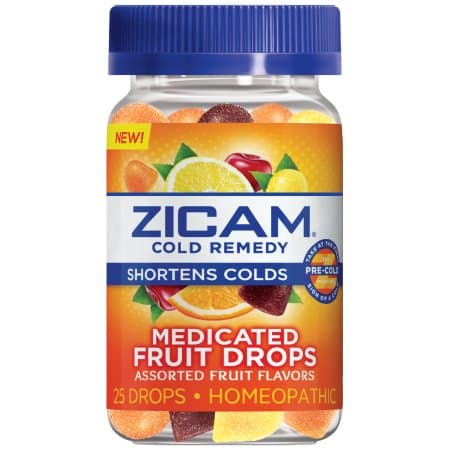 Take At The First Sign of a Cold. Shortens Colds. Assorted Fruit Flavors. Homeopathic. Zicam is completely different from most other cold remedies because it actually shortens colds versus just temporarily relieving symptoms. These soft, chewy drops, made with a proprietary zinc formulation, are clinically proven to shorten your cold when taken at the first sign. Clinically proven to shorten your cold when taken at first sign. Delicious, soft assorted fruit flavored drops in orange, lemon and cherry.Specifications